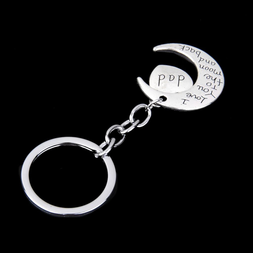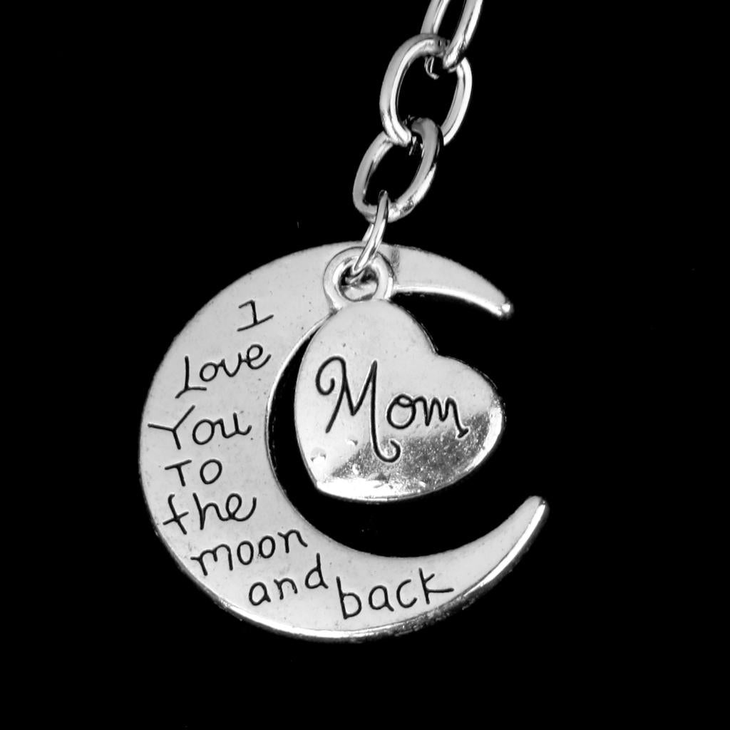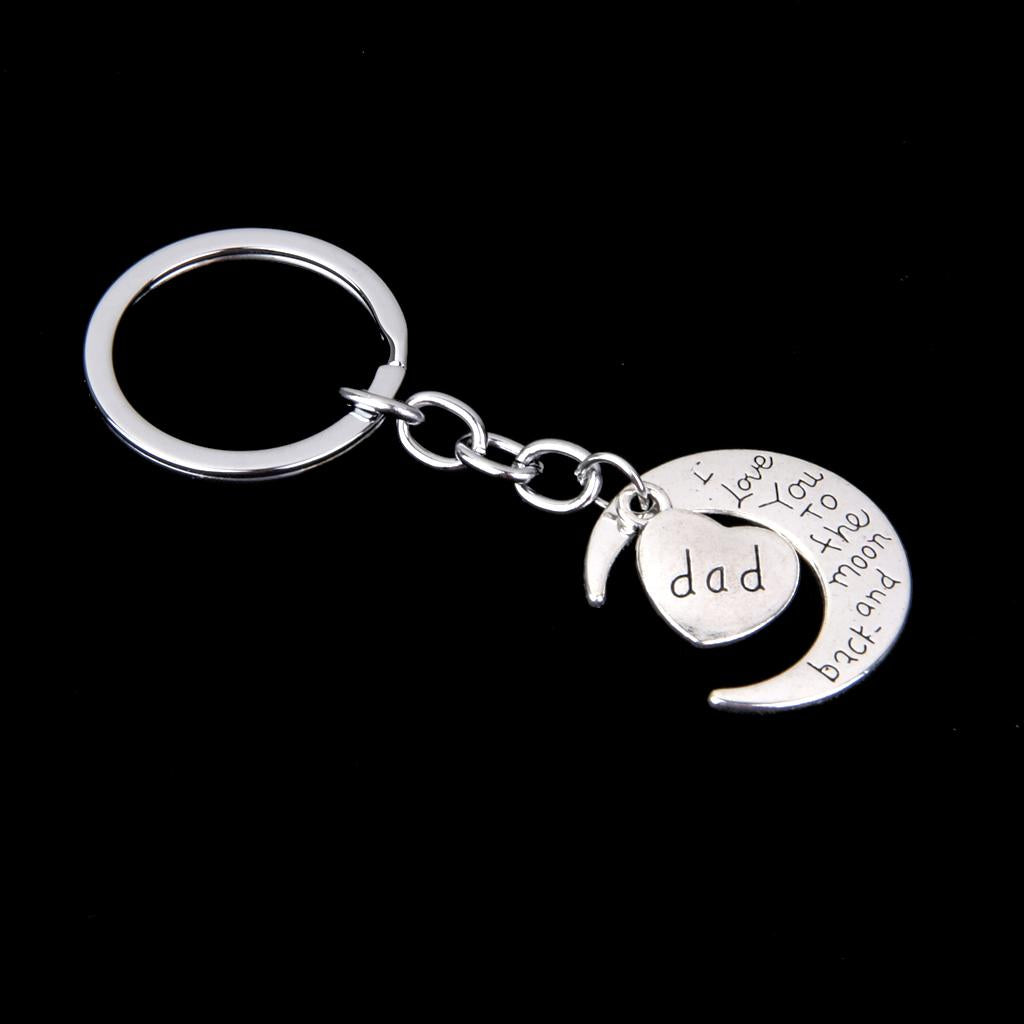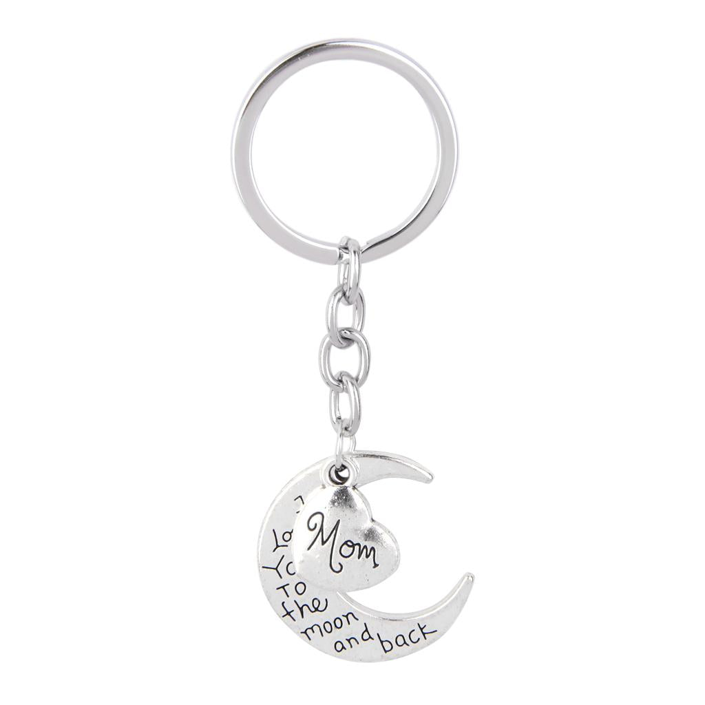 I LOVE YOU TO THE MOON AND BACK MOM DAD Heart Pendant Keyring Keychain Father Mothers Day Gift