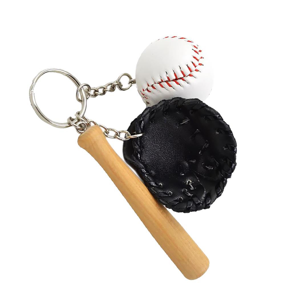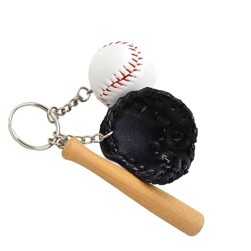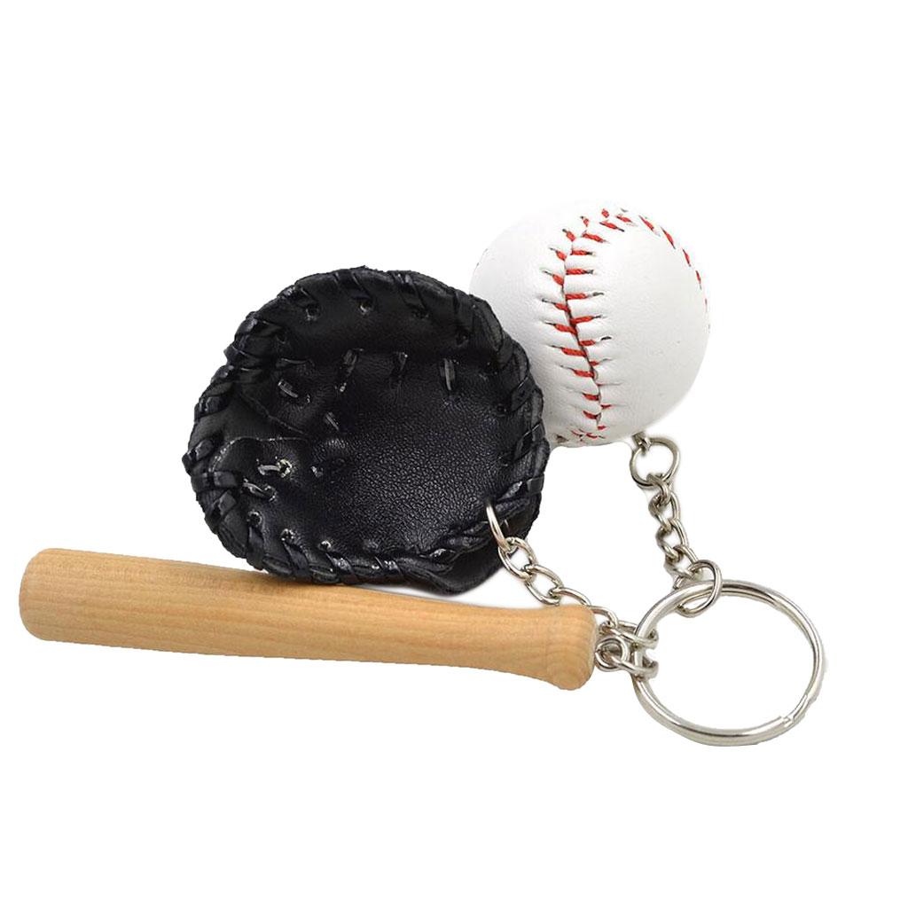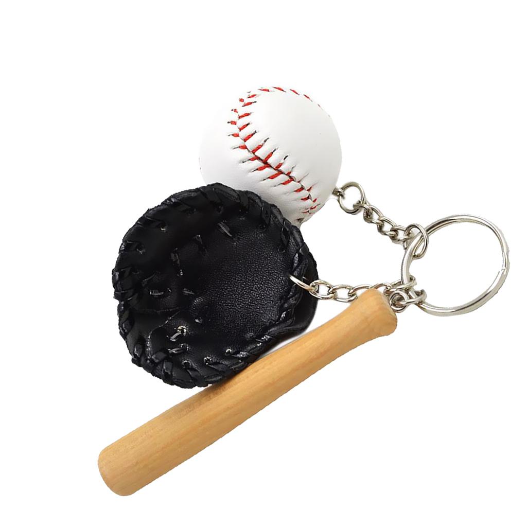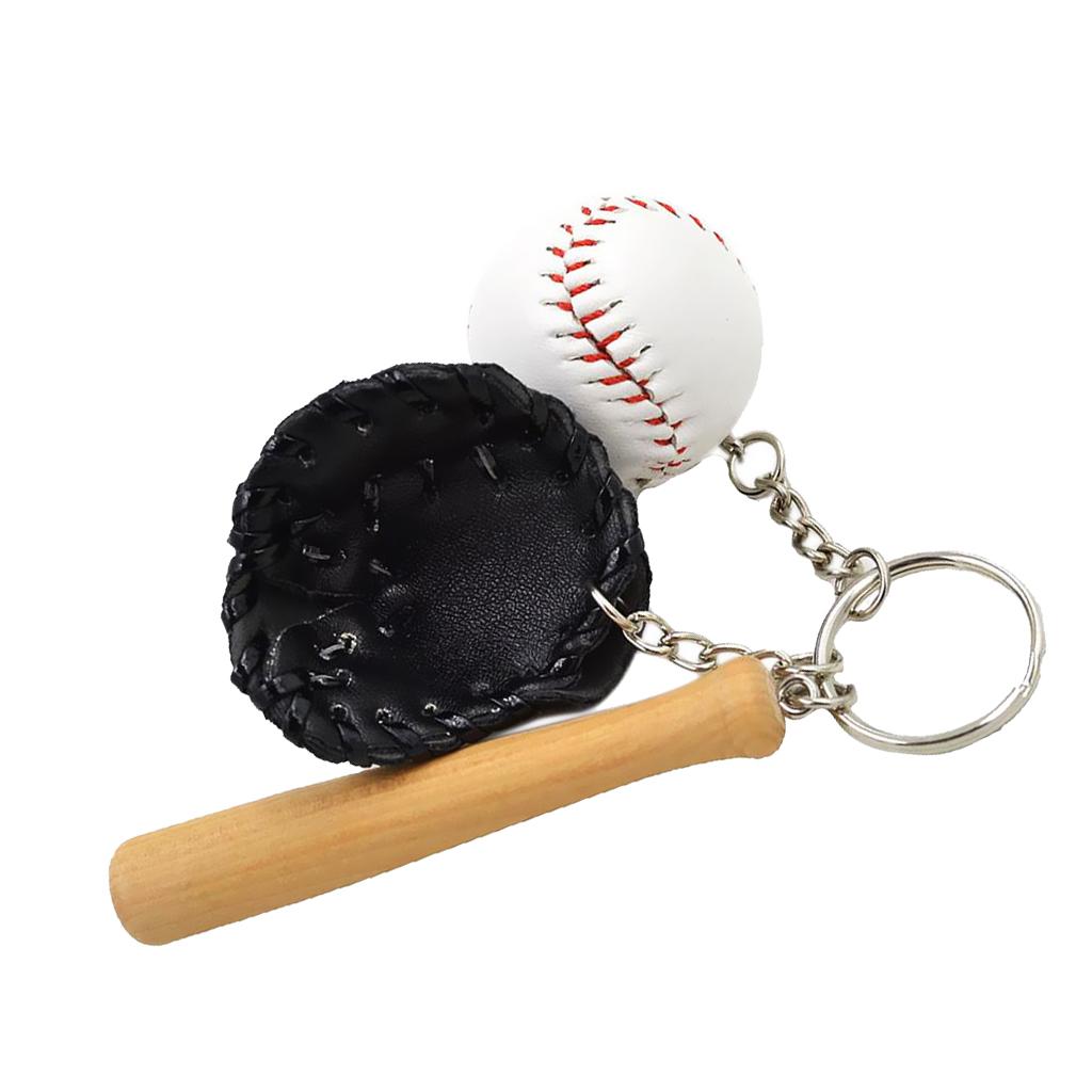 Mini Baseball Ball+Bat+Glove Set Pendant Keyring Key Chain Gift - Black
