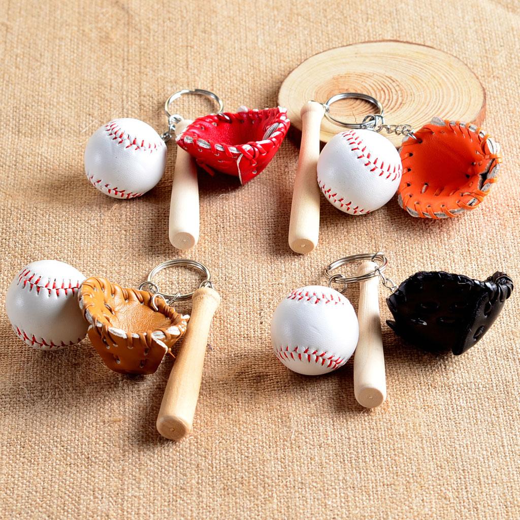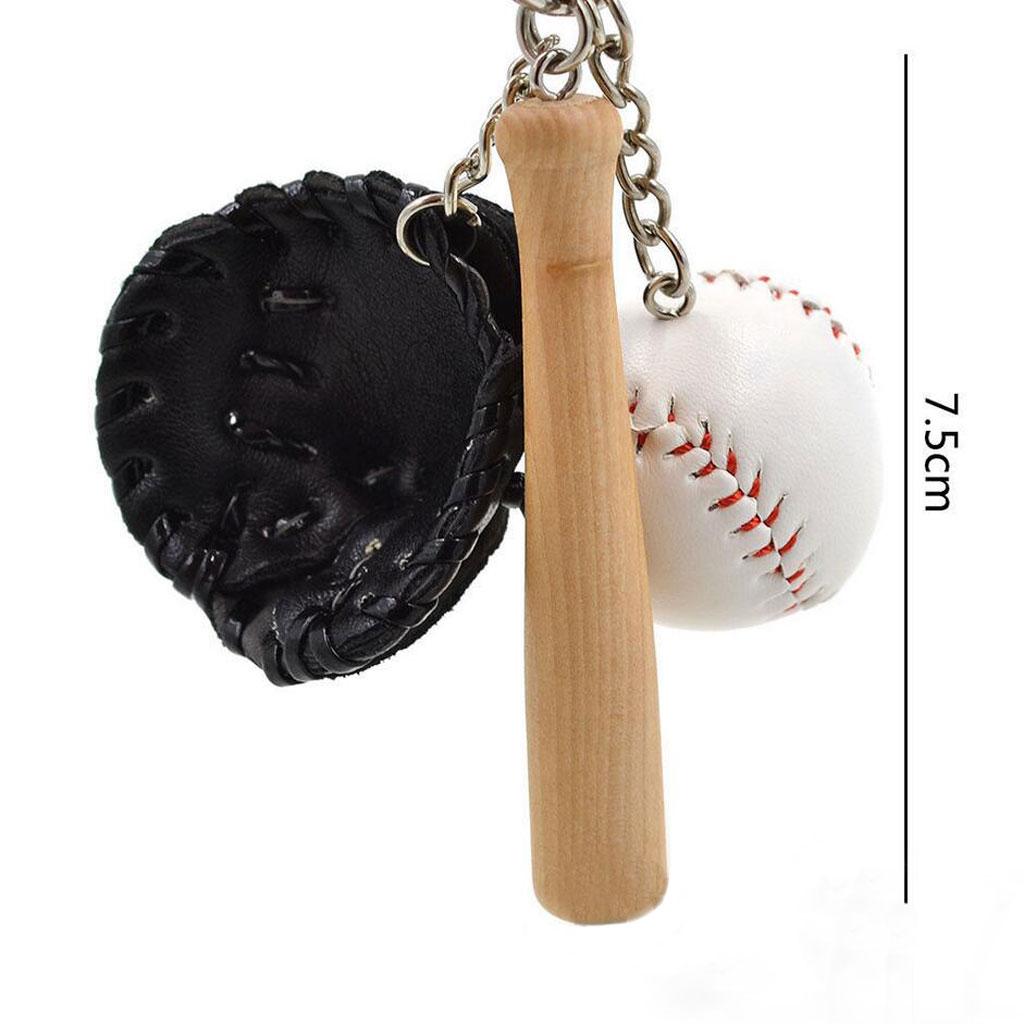 • Fashion mini baseball ball+bat+glove three piece set pendant keyring keychain