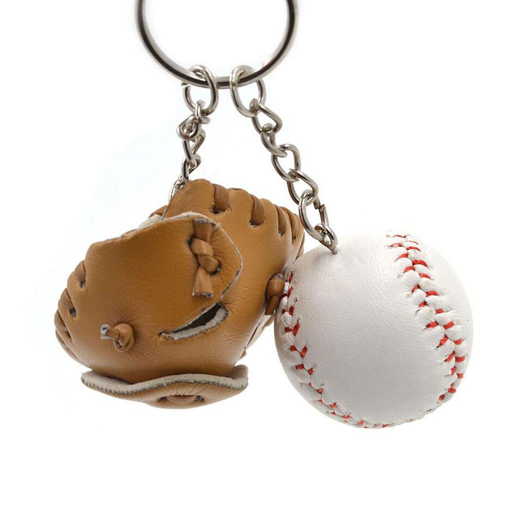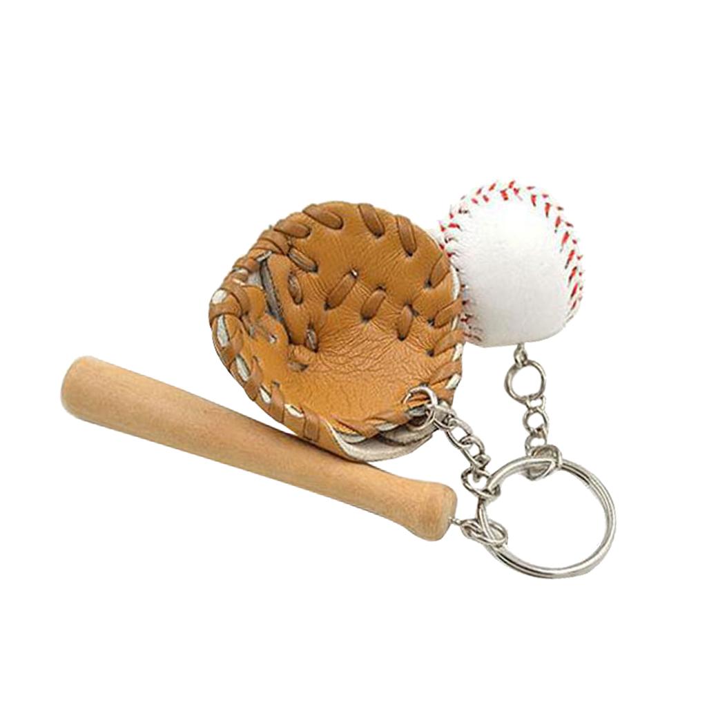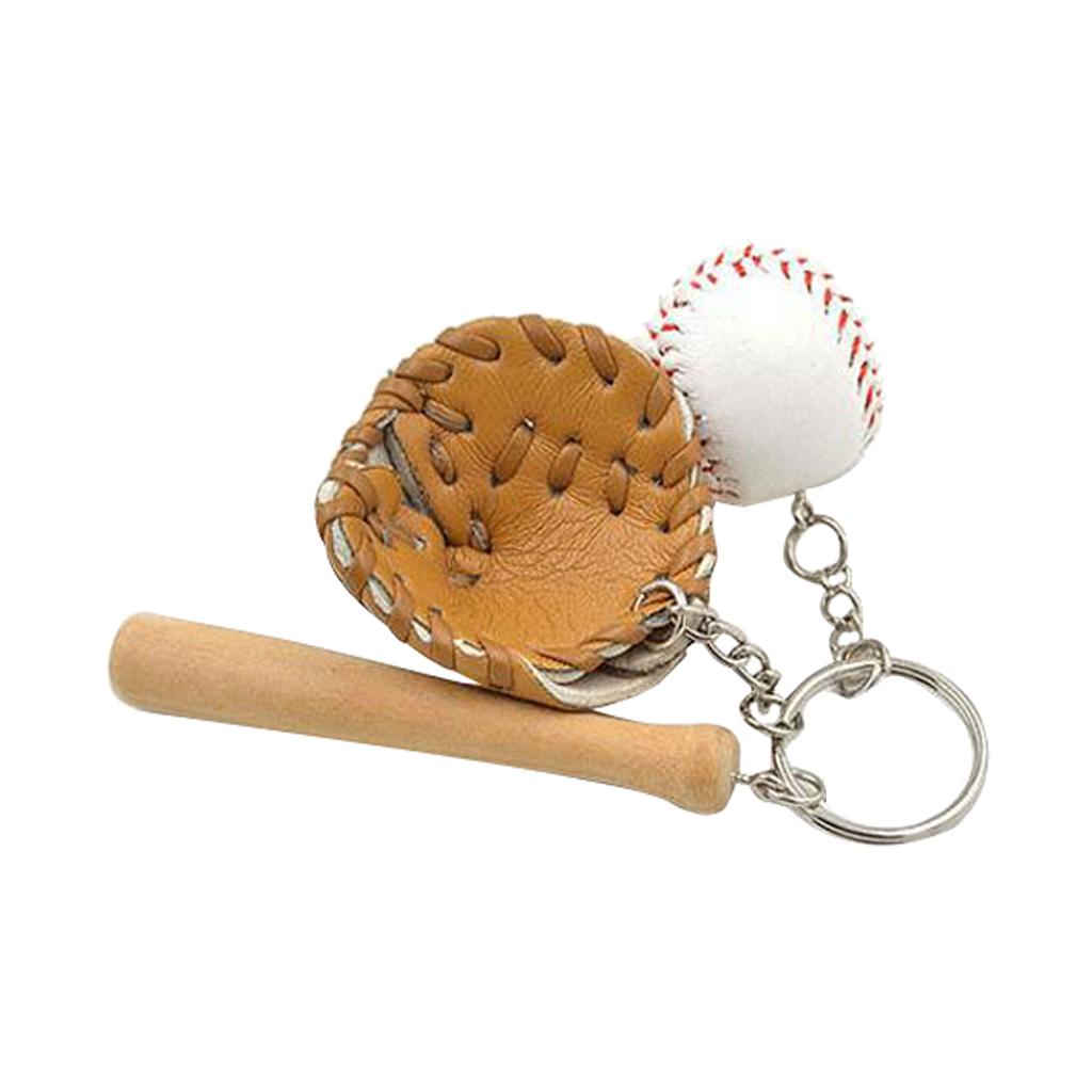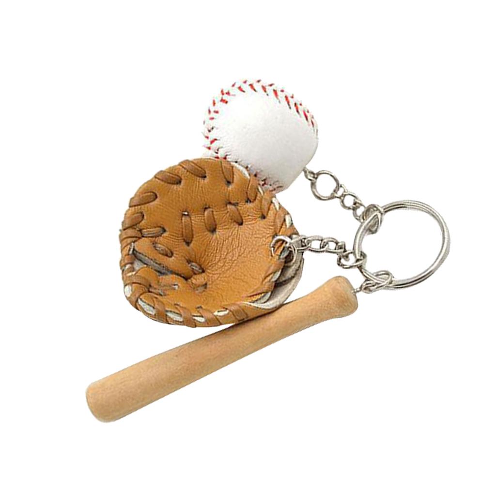 Mini Baseball Ball+Bat+Glove Set Pendant Keyring Key Chain Gift - Brown