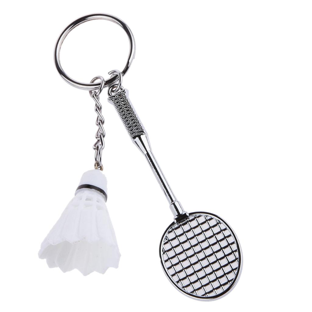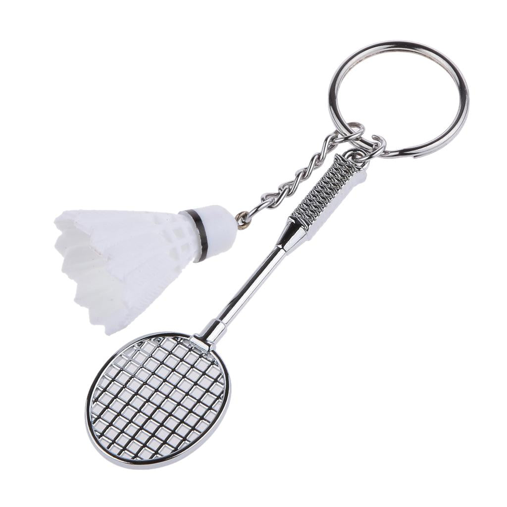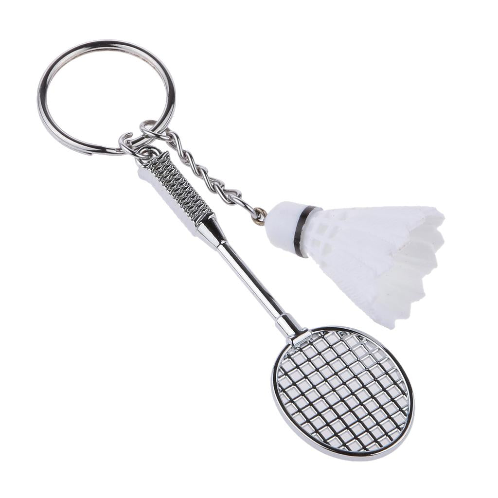 Mini Bedminton Racket Shuttlecock Pendant Keyring Key Chain Gift White