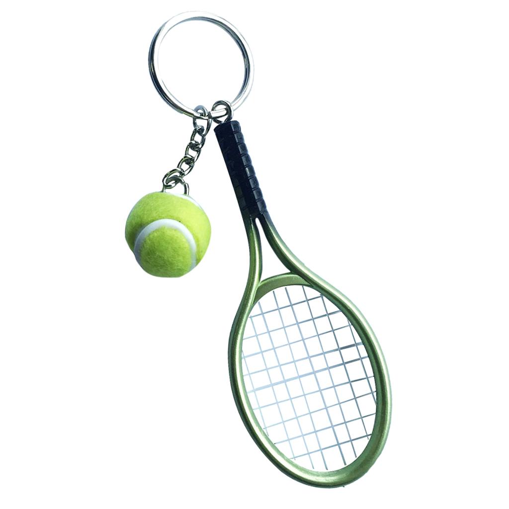 Mini Tennis Ball Racket Pendant Keyring Key Chain Gift - Green