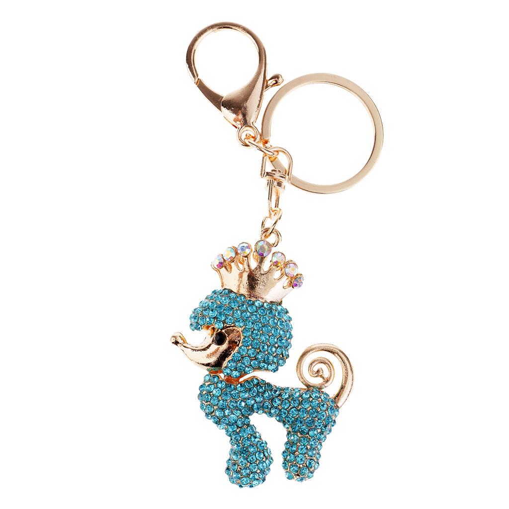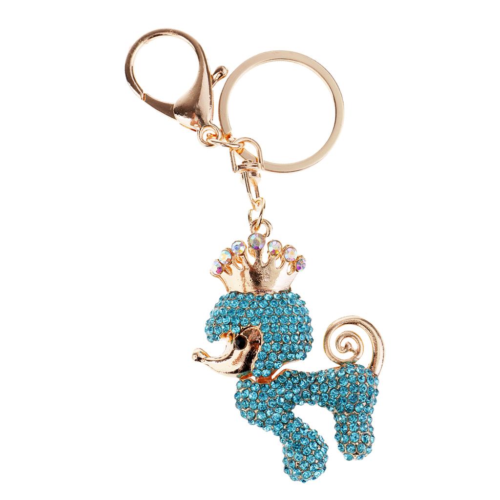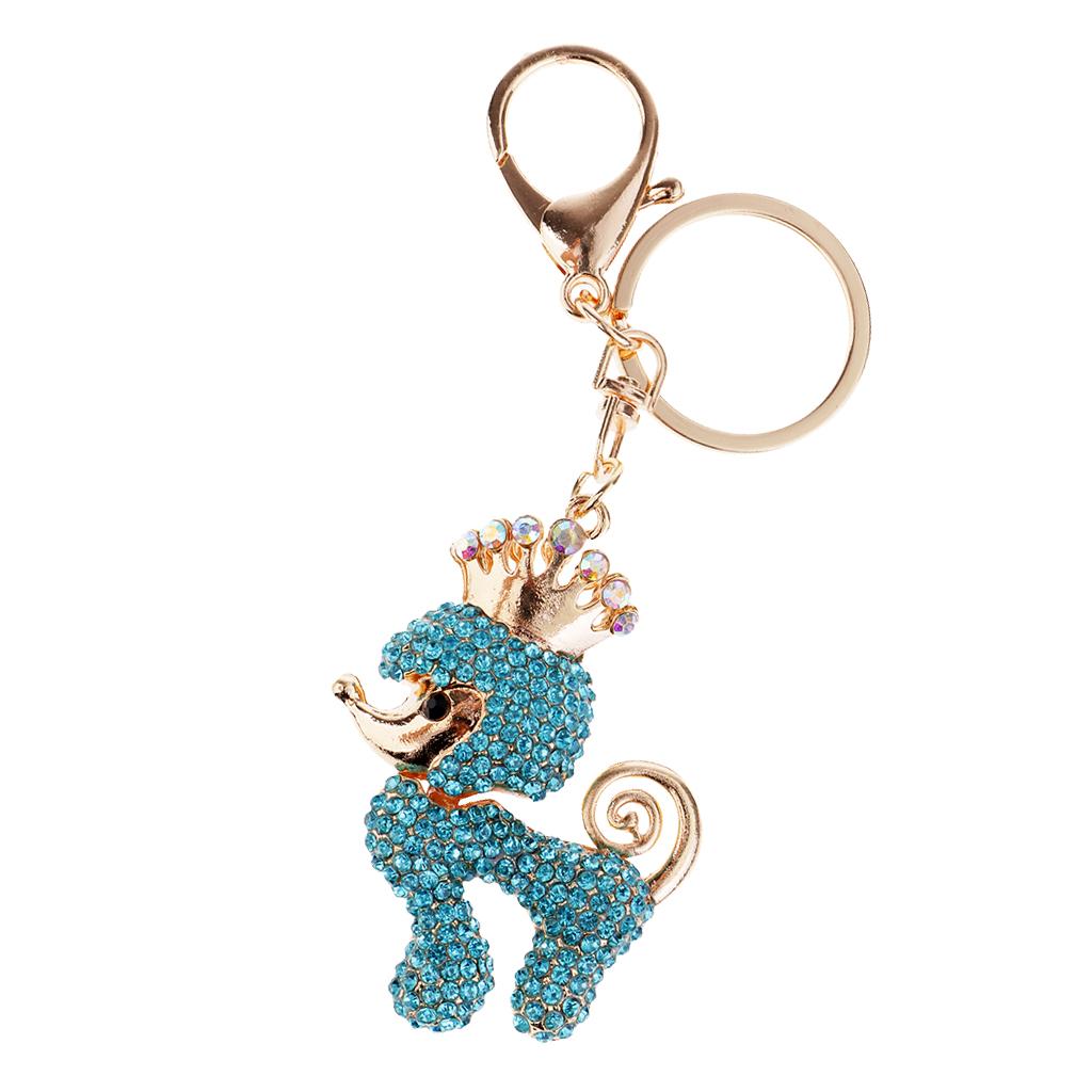 Poodle Dog Crystal Keychains Keyrings Car Women Purse Bag Key Chain Blue