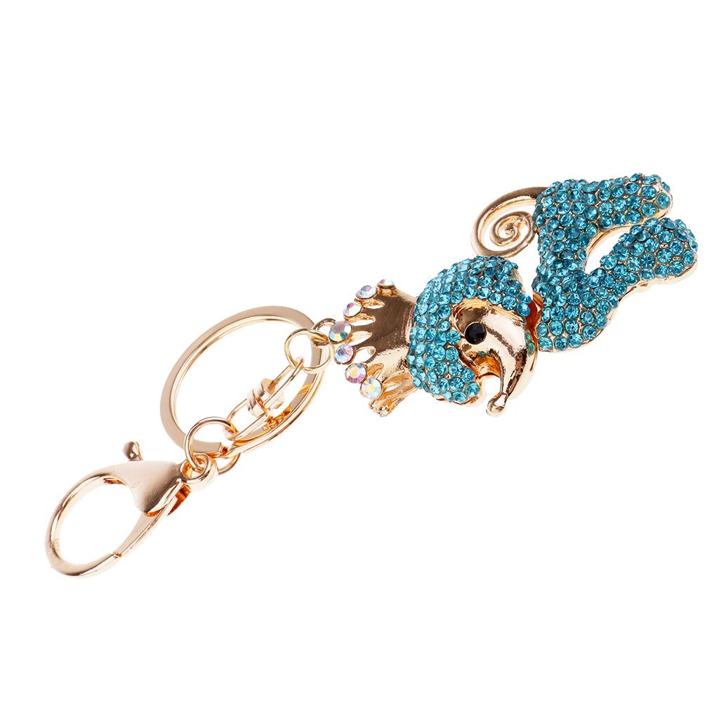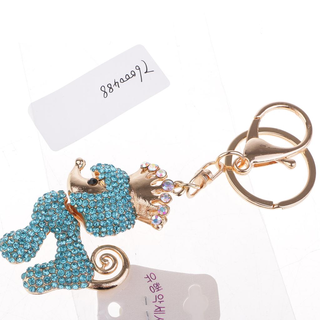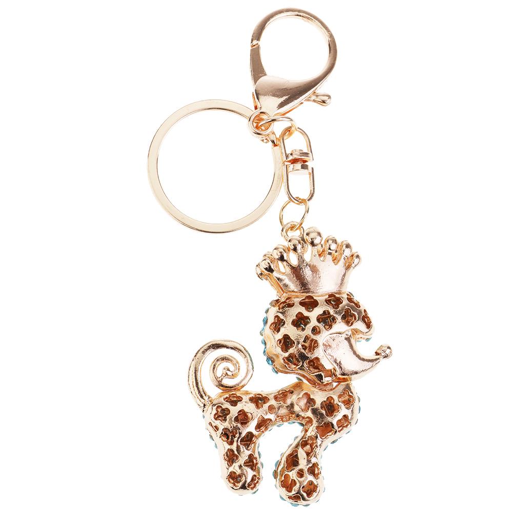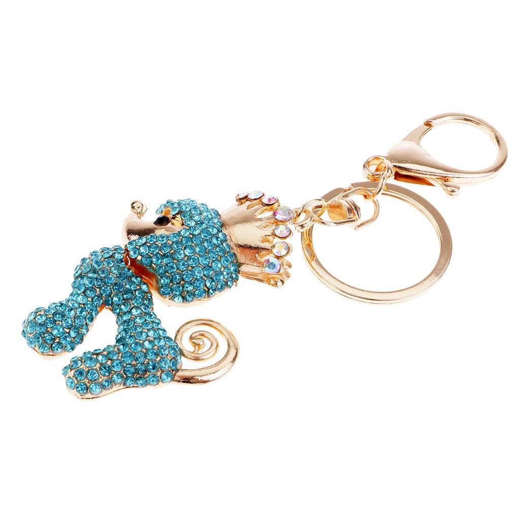 Poodle Dog Crystal Keychains Keyrings Car Women Purse Bag Key Chain Blue
