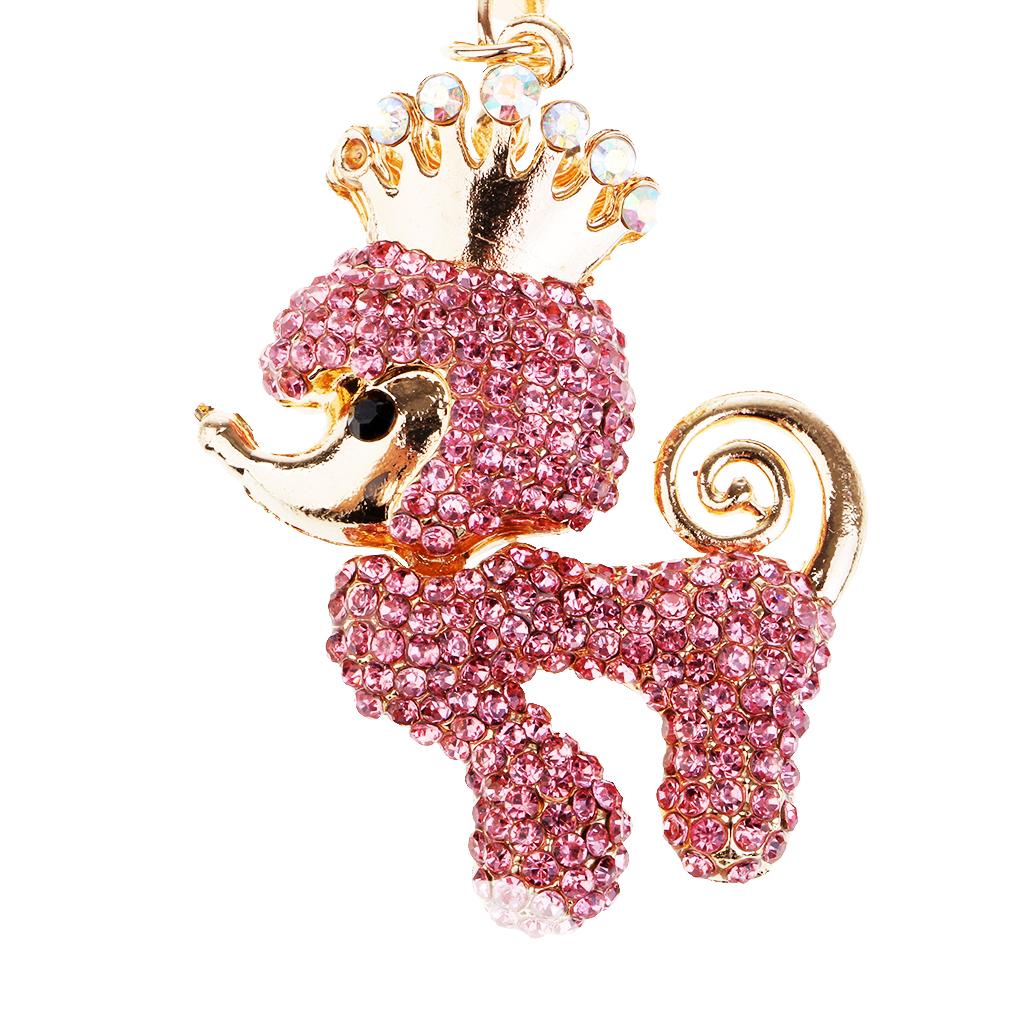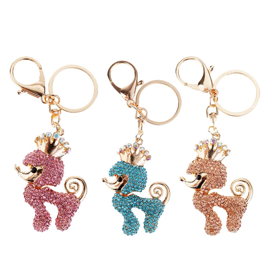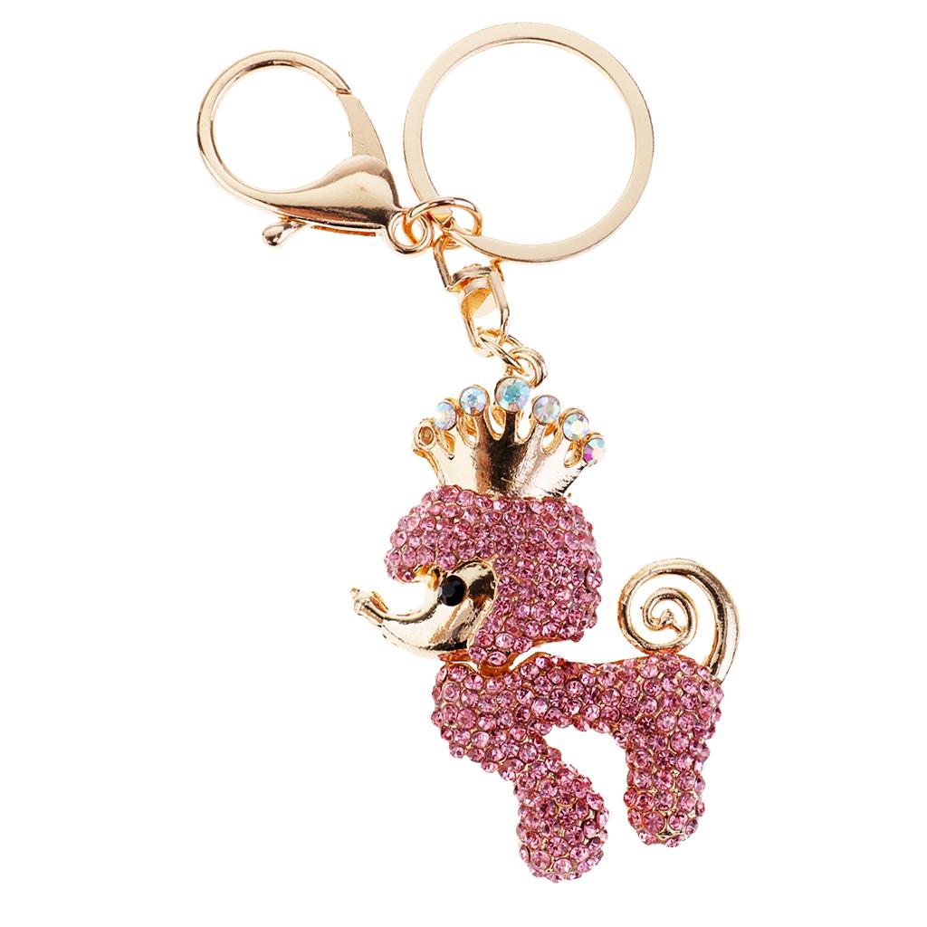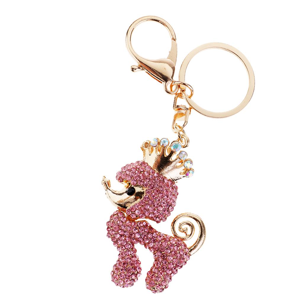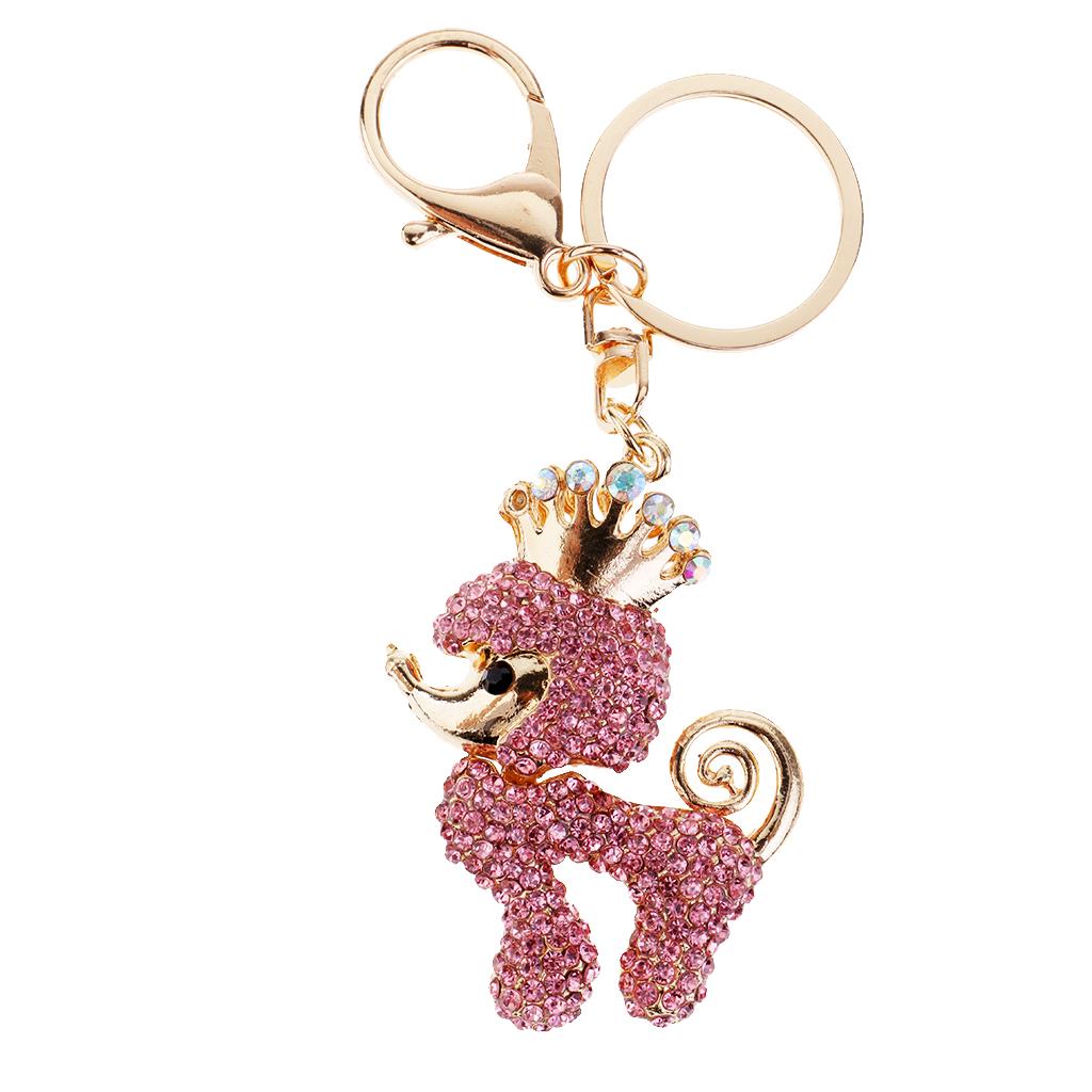 Poodle Dog Crystal Keychains Keyrings Car Women Purse Bag Key Chain Pink