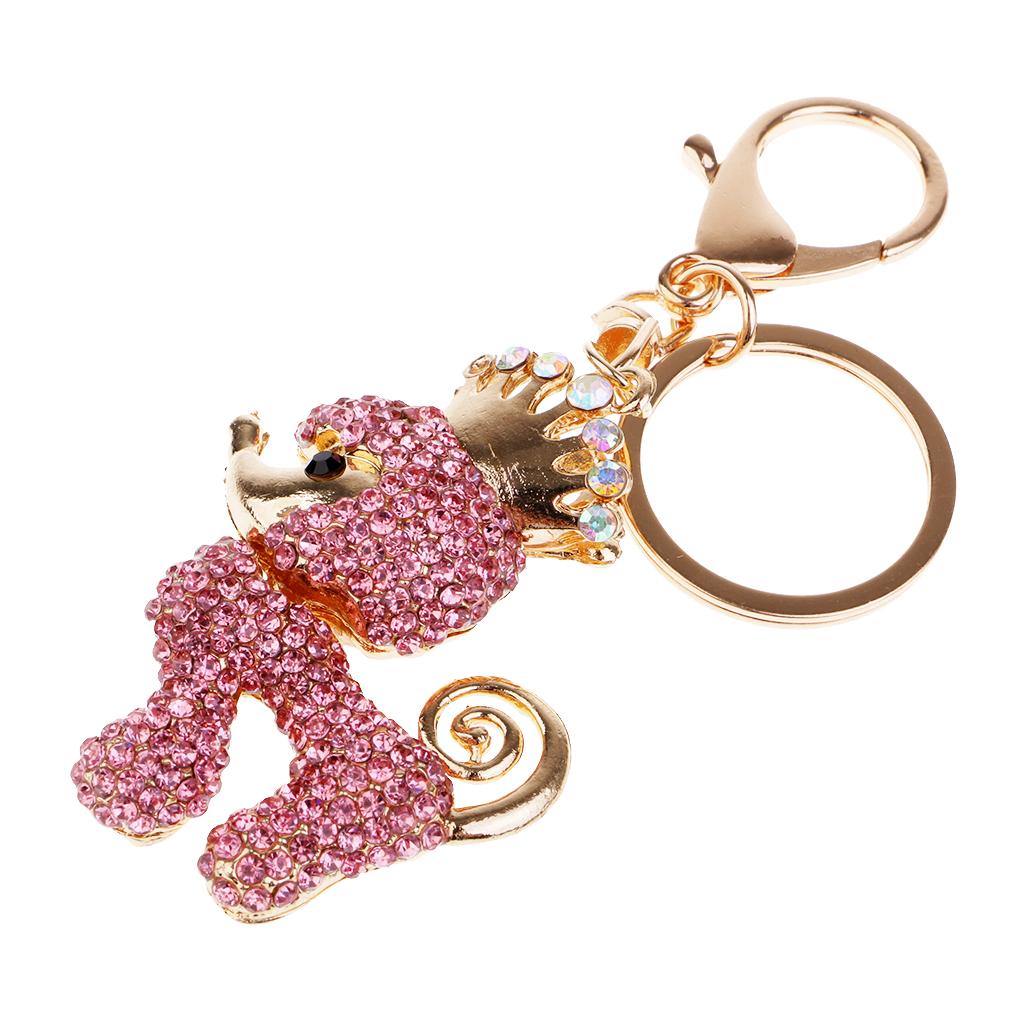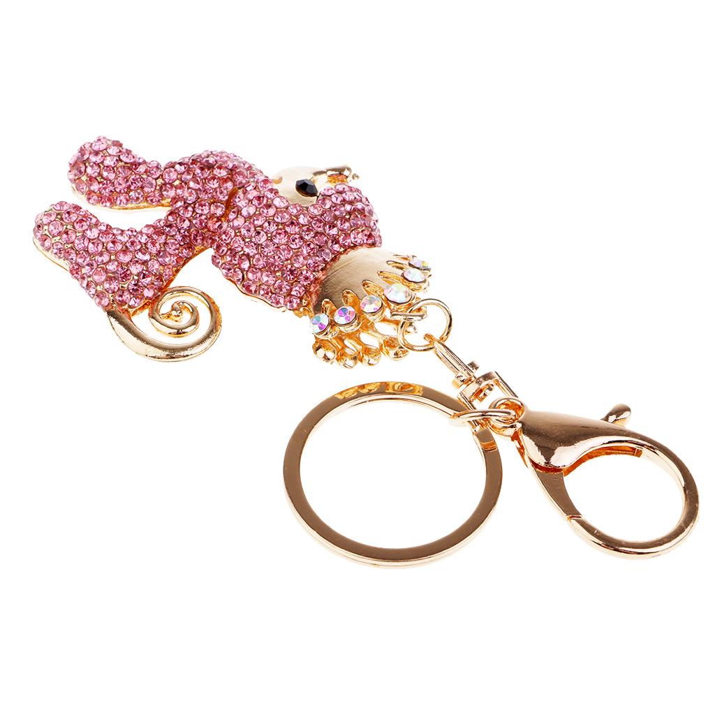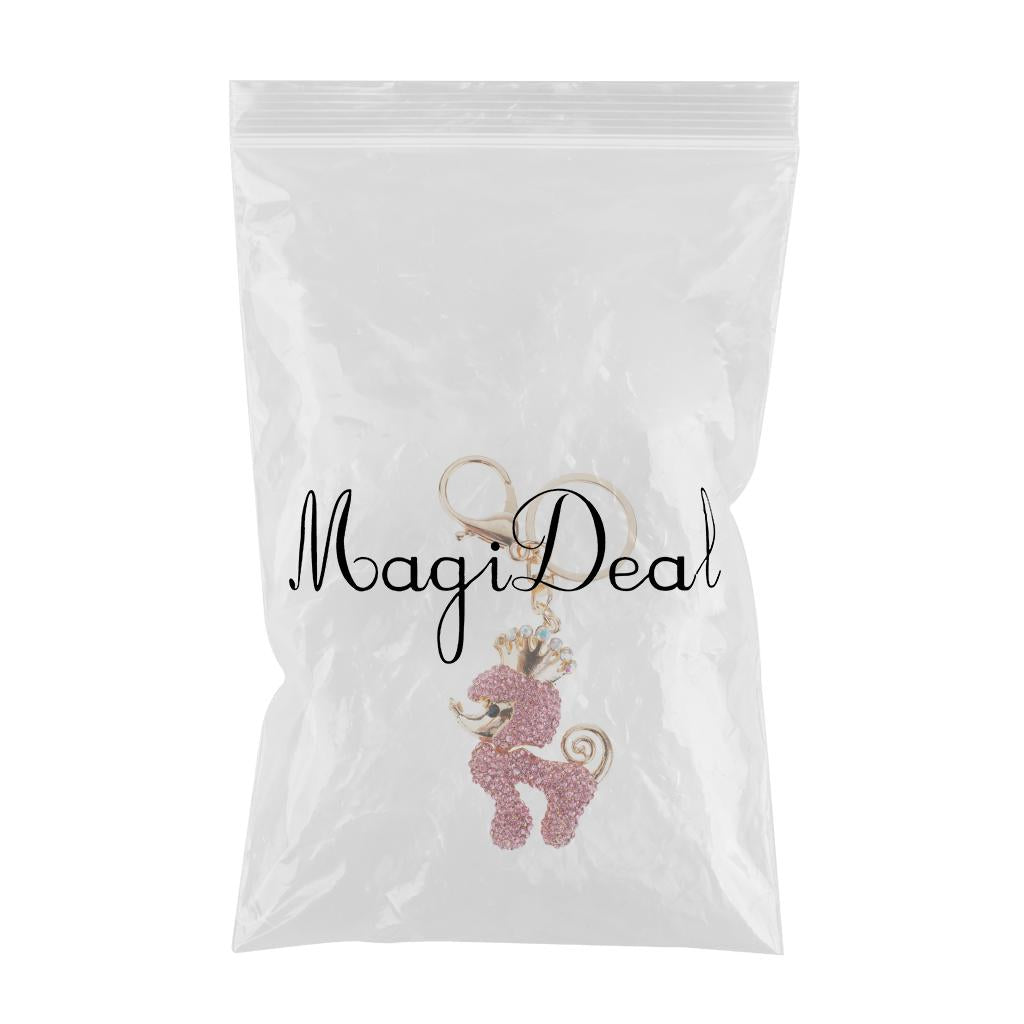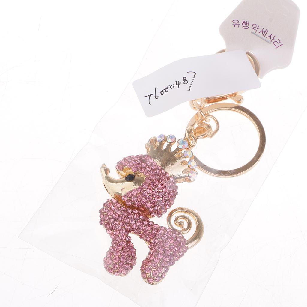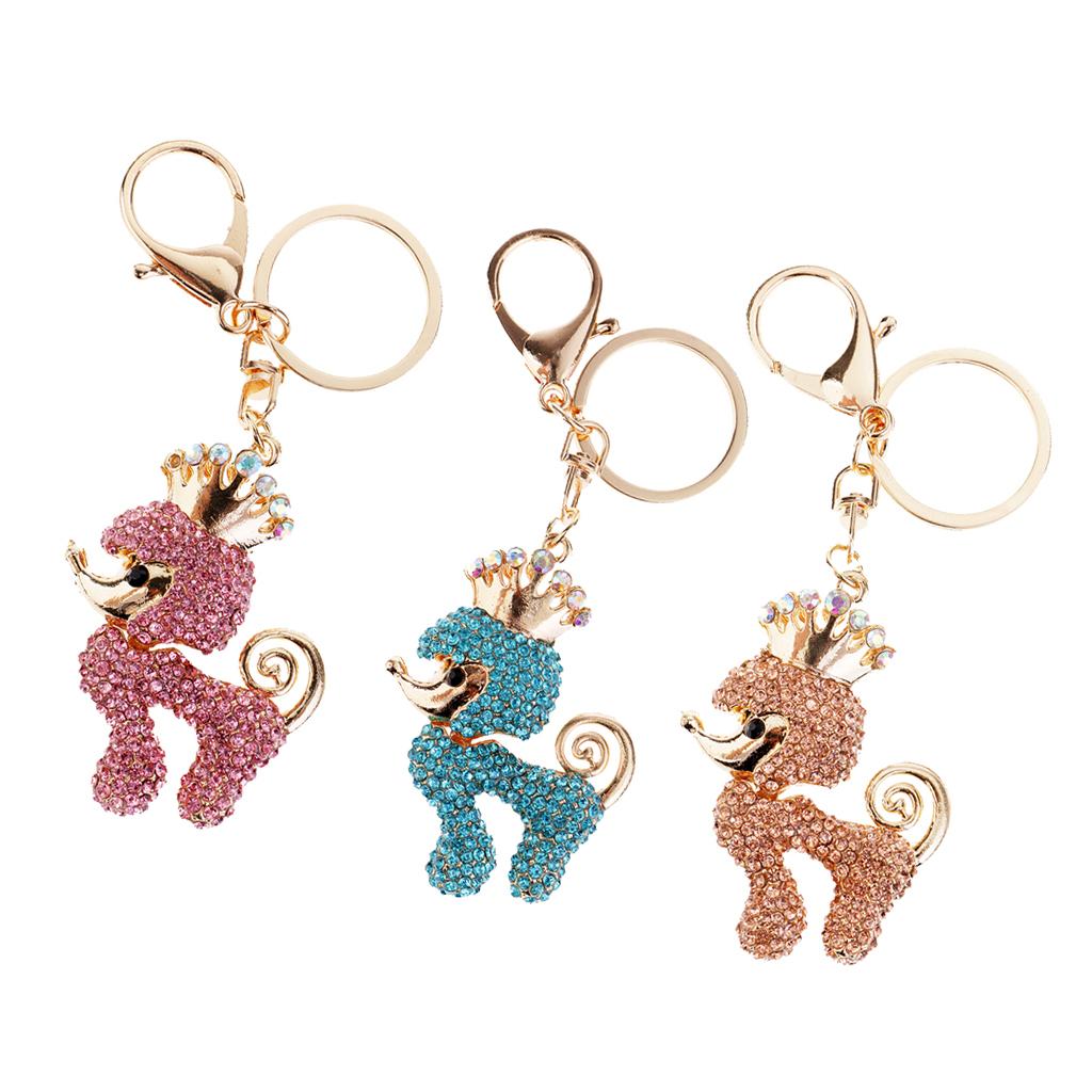 Poodle Dog Crystal Keychains Keyrings Car Women Purse Bag Key Chain Pink