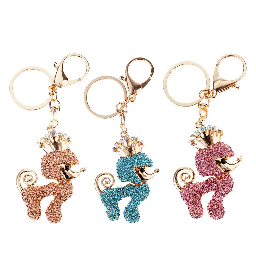 Cute Poodle Dog keychain key chain car women Crystal key ring pendant