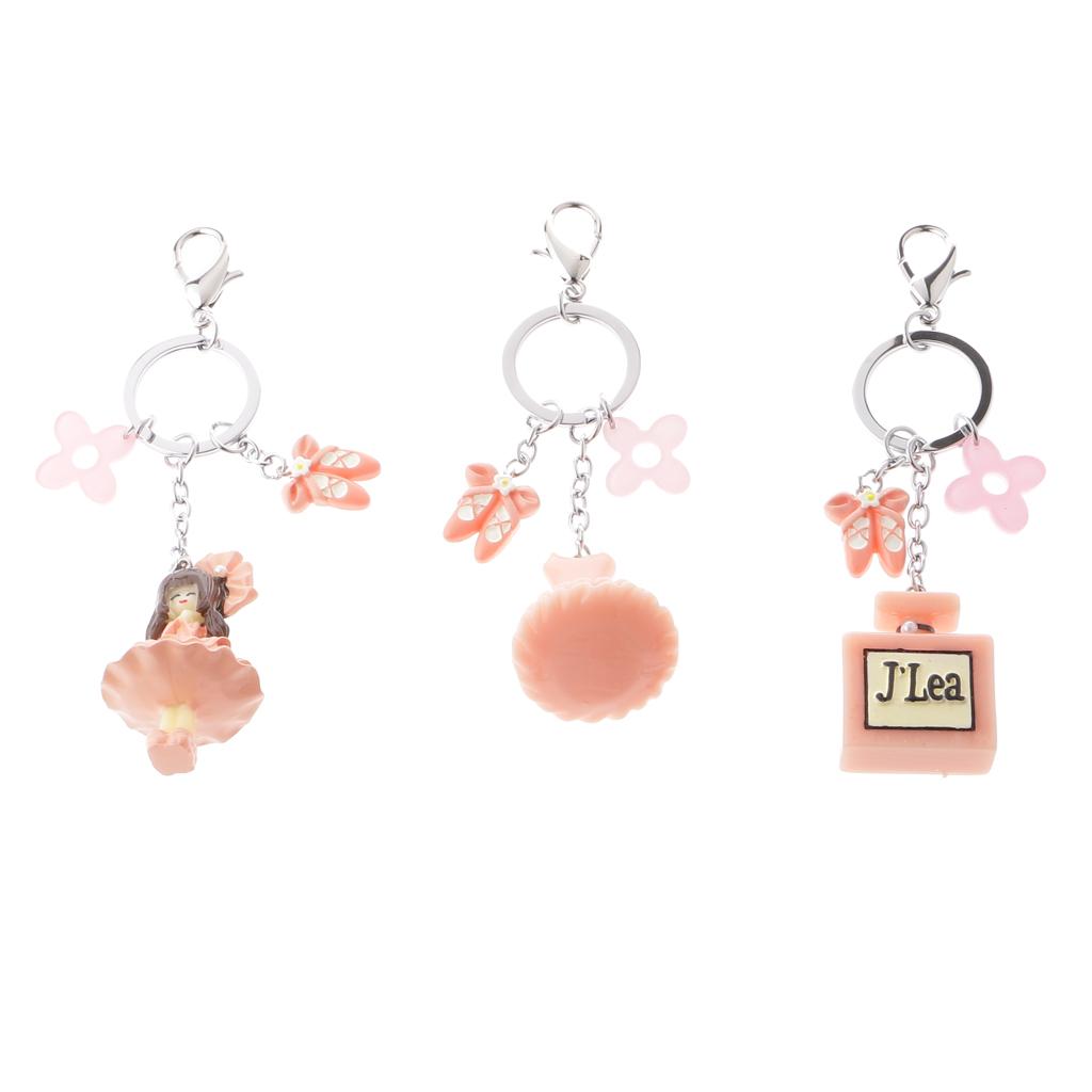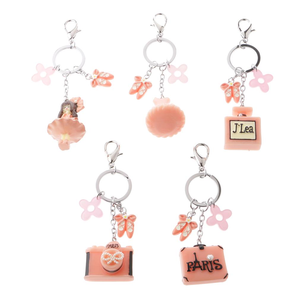 • Charming three-dimensional camera, mini skirt, little girl, and perfumes pendant keychain, five random distribution.