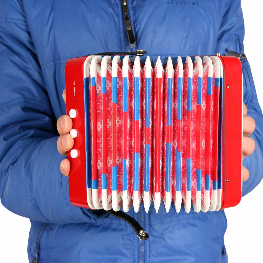 This music machine is just the right size for young hands, has an authentic accordion sound and 2-octave range in the key of C.