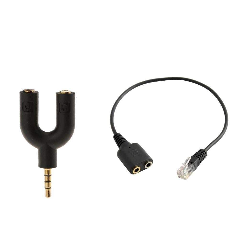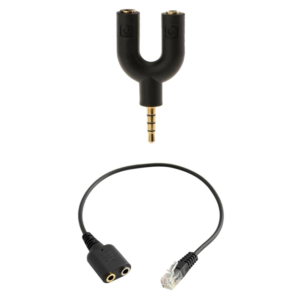 -Connector A: 2x 3.5mm female ,Connector B: RJ9 male; Length:25cm.2 slots -one for micophone and one for headset.