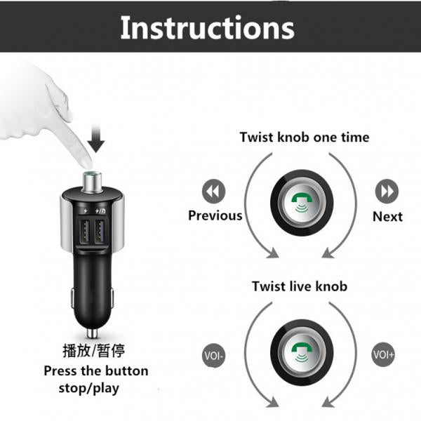 Dual USB Car Charger with Hands-free Calling Supports USB Flash Drive
