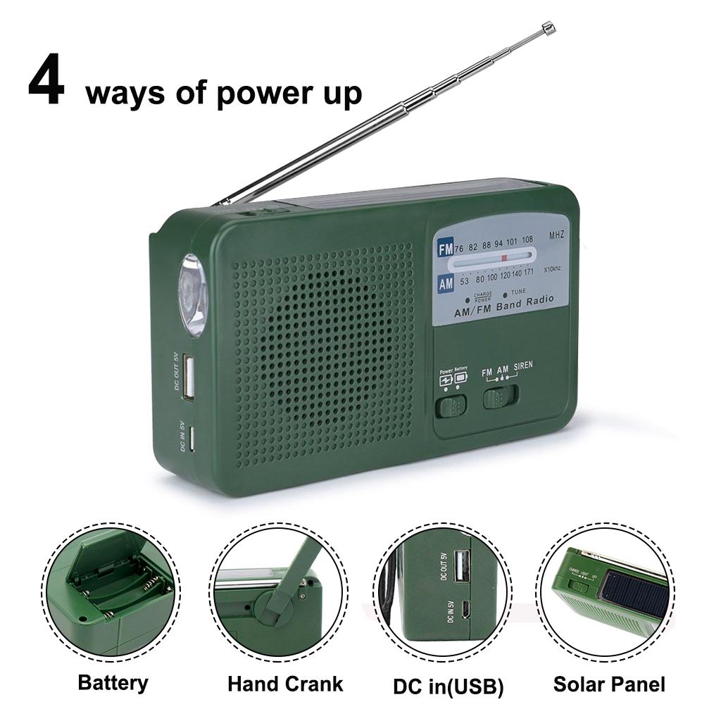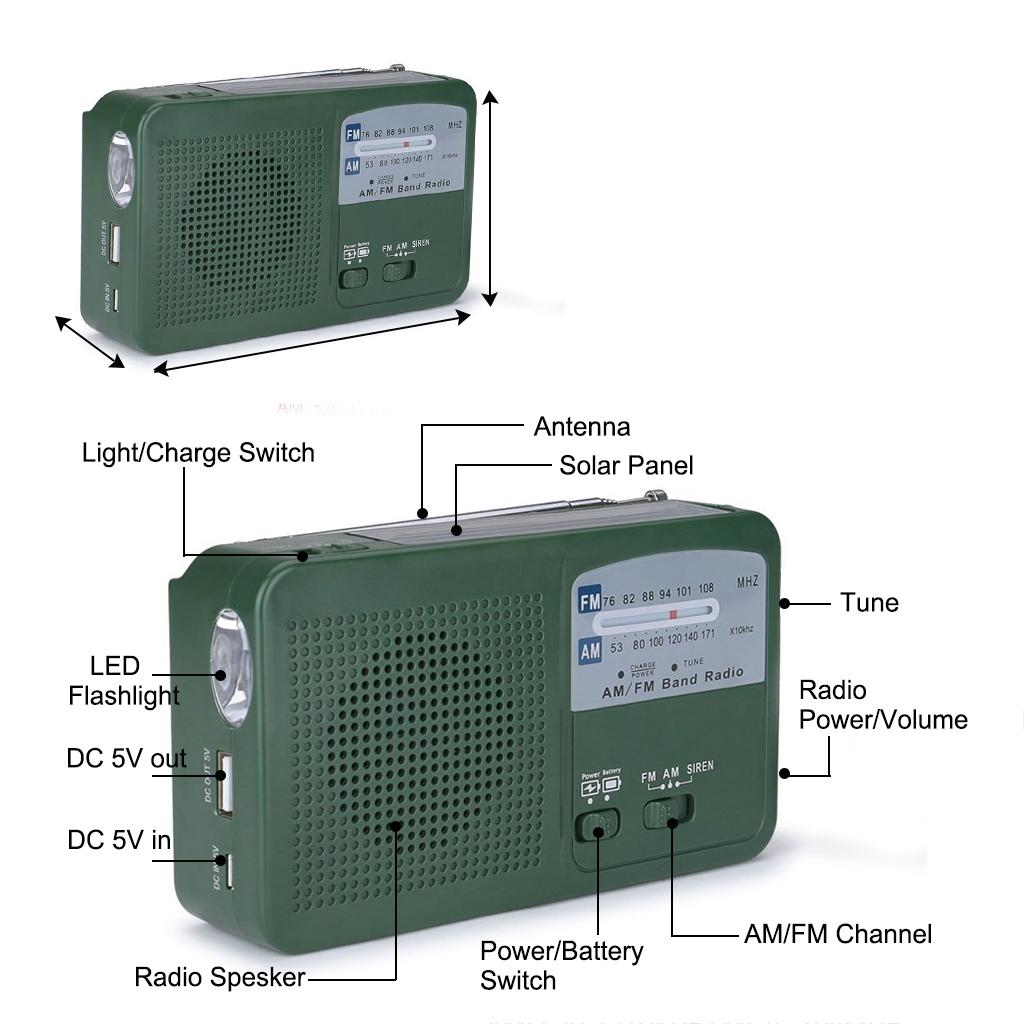 -Wide Application: Music player, LED lighting, Emergency alert, Phone charging, FM AM NOAA radio.