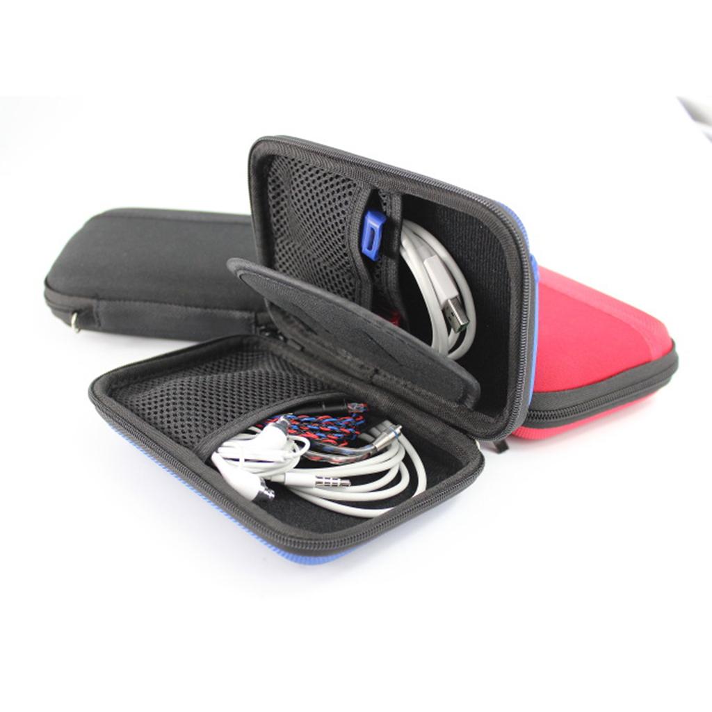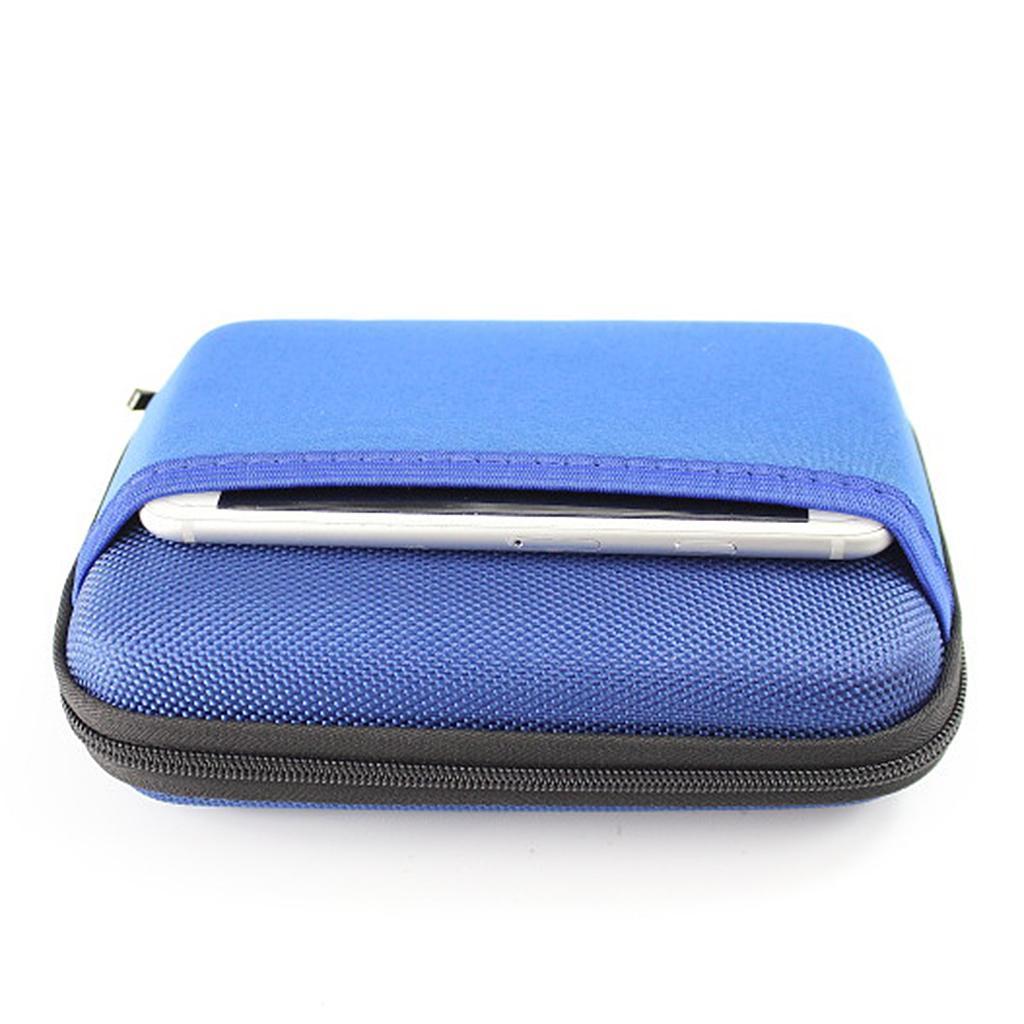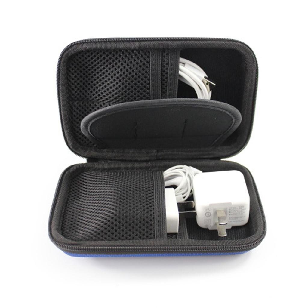 Portable Earbuds/Charger/USB/Cable Hard Case Storage Bag Mesh Pocket Blue