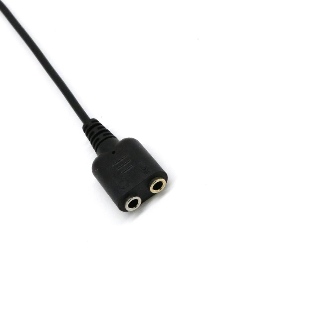 Connector A: 2x 3.5mm female ,Connector B: RJ9 male; Length:25cm.2 slots -one for micophone and one for headset.