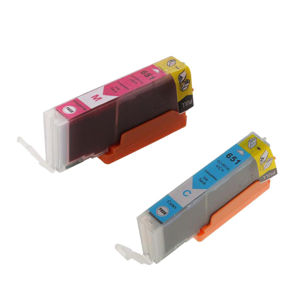 2 Pieces Ink Cartridge CLI 651 XL PGI 650(Cyan+Magenta)