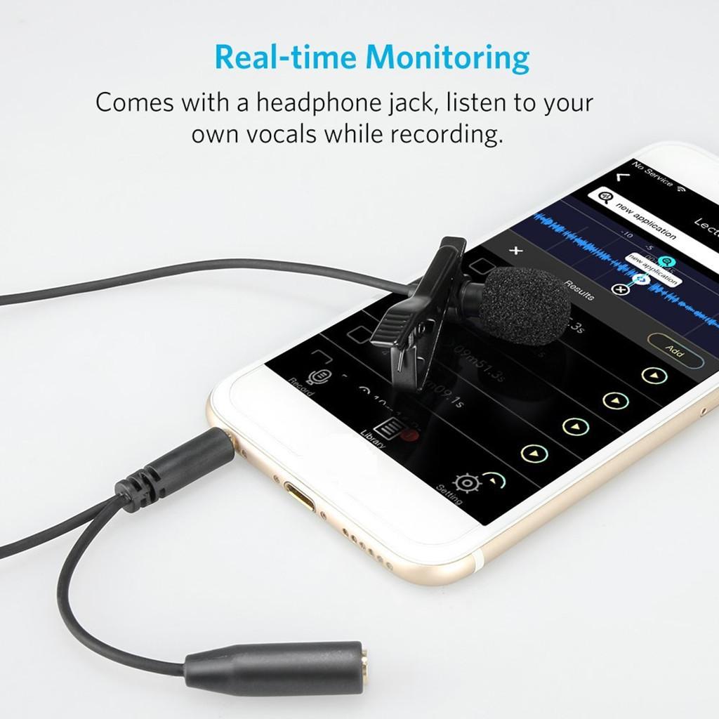 Clip On Lapel Microphone Hands Free Wired Condenser Mini Lavalier Mic with Headphone jack.