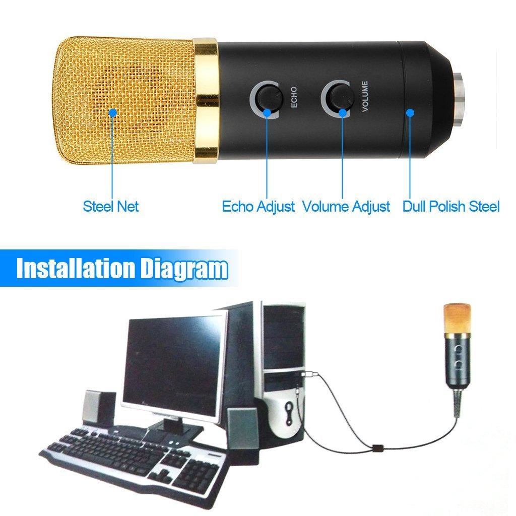 Condenser Sound Studio Recording Microphone Dynamic Mic With Stand Holder