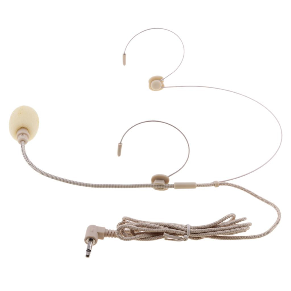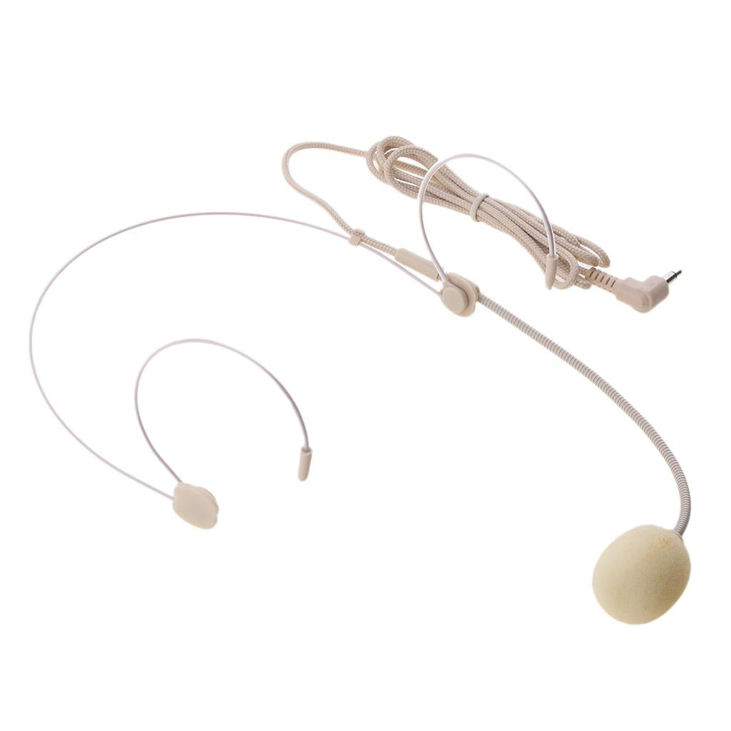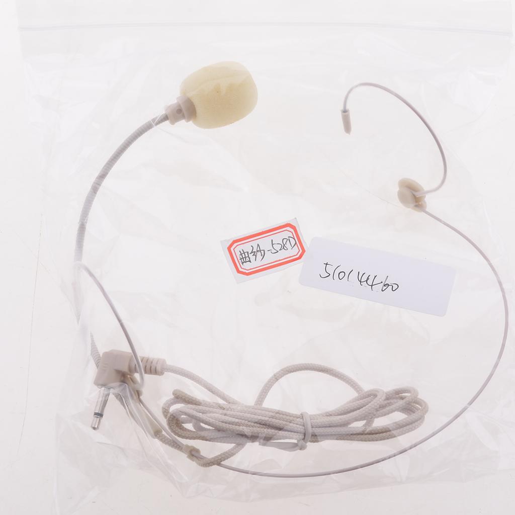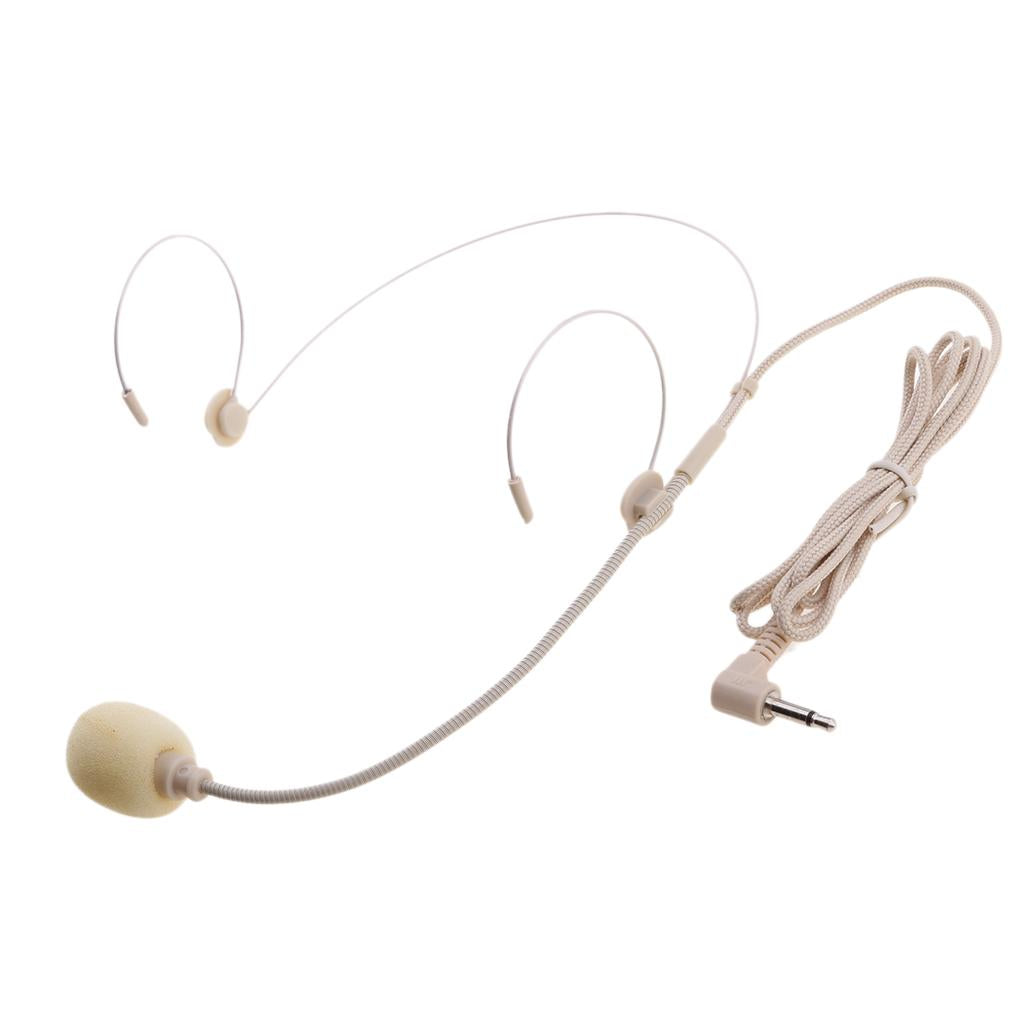 Double Ear Hook Wired Headset Headworn Microphone Beige 3.5mm Right Angle
