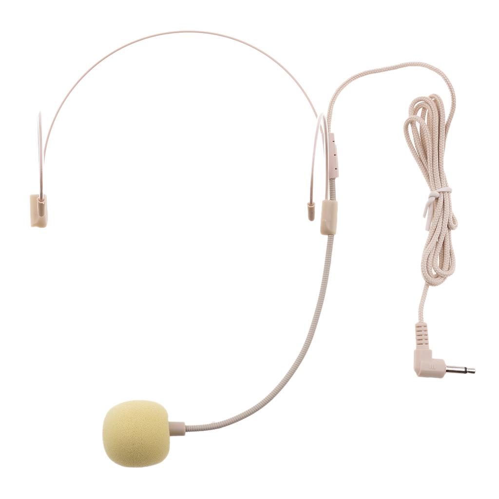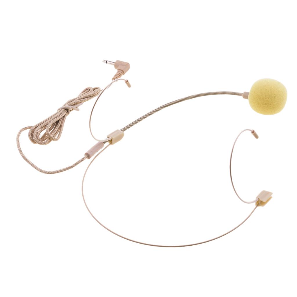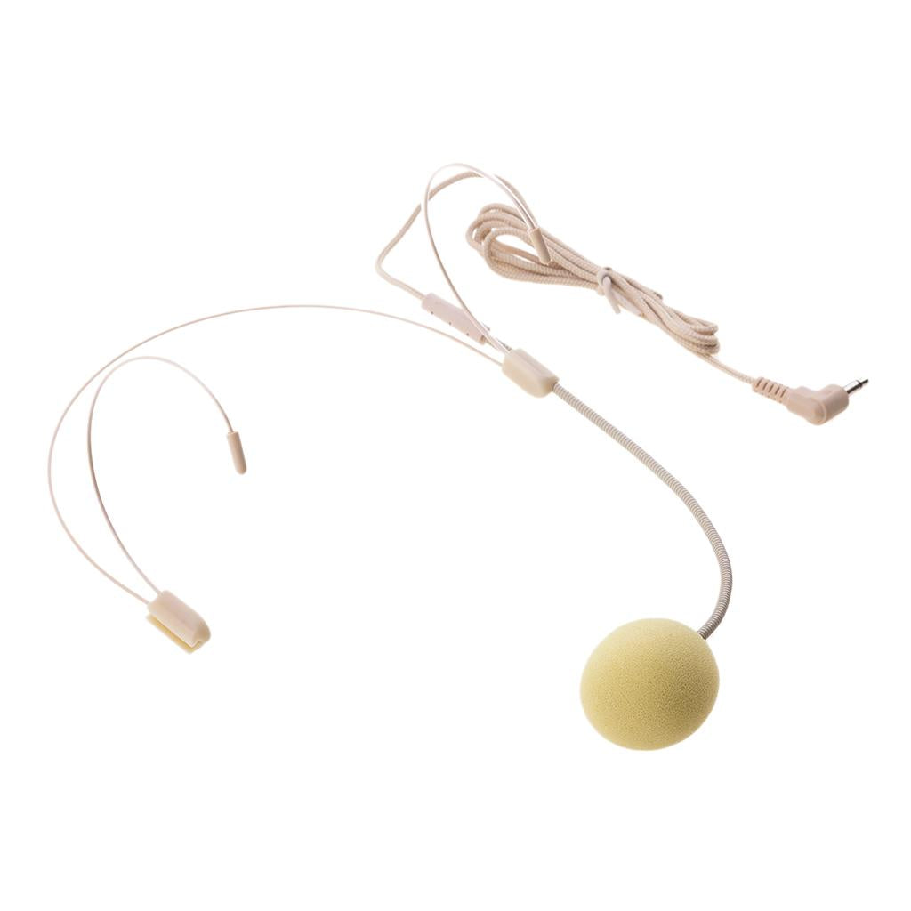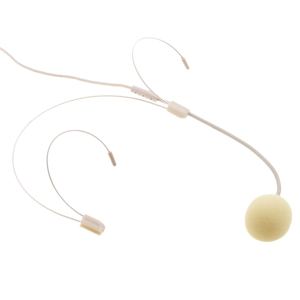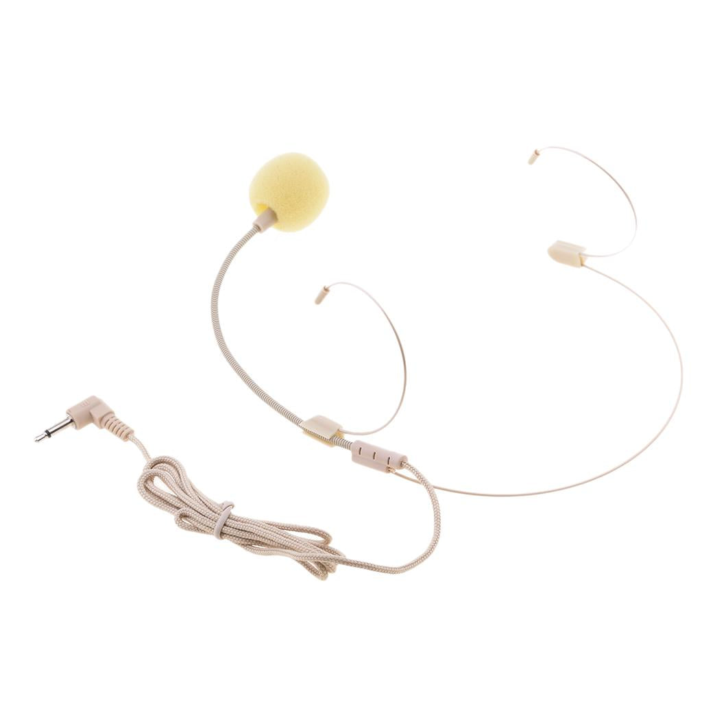 Double Ear Hook Wired Headset Headworn Microphone Beige 3.5mm Right Angle