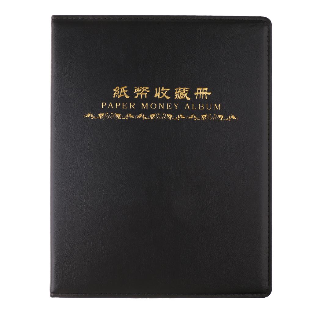 60 Pockets Paper Money Collection Album Leather Bill Notes Book Holder Black