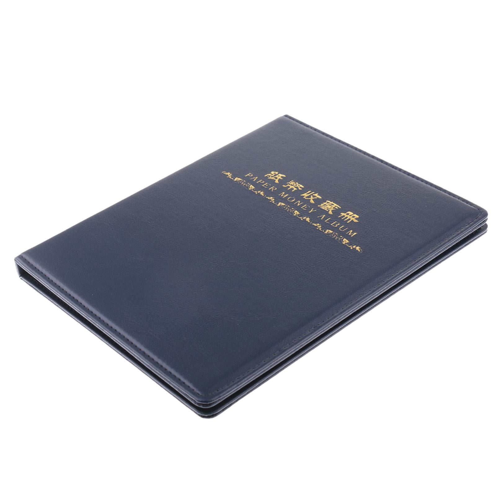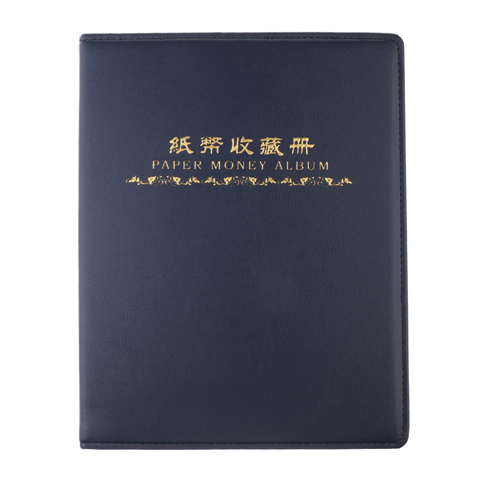 60 Pockets Paper Money Collection Album Leather Bill Notes Book Holder Blue