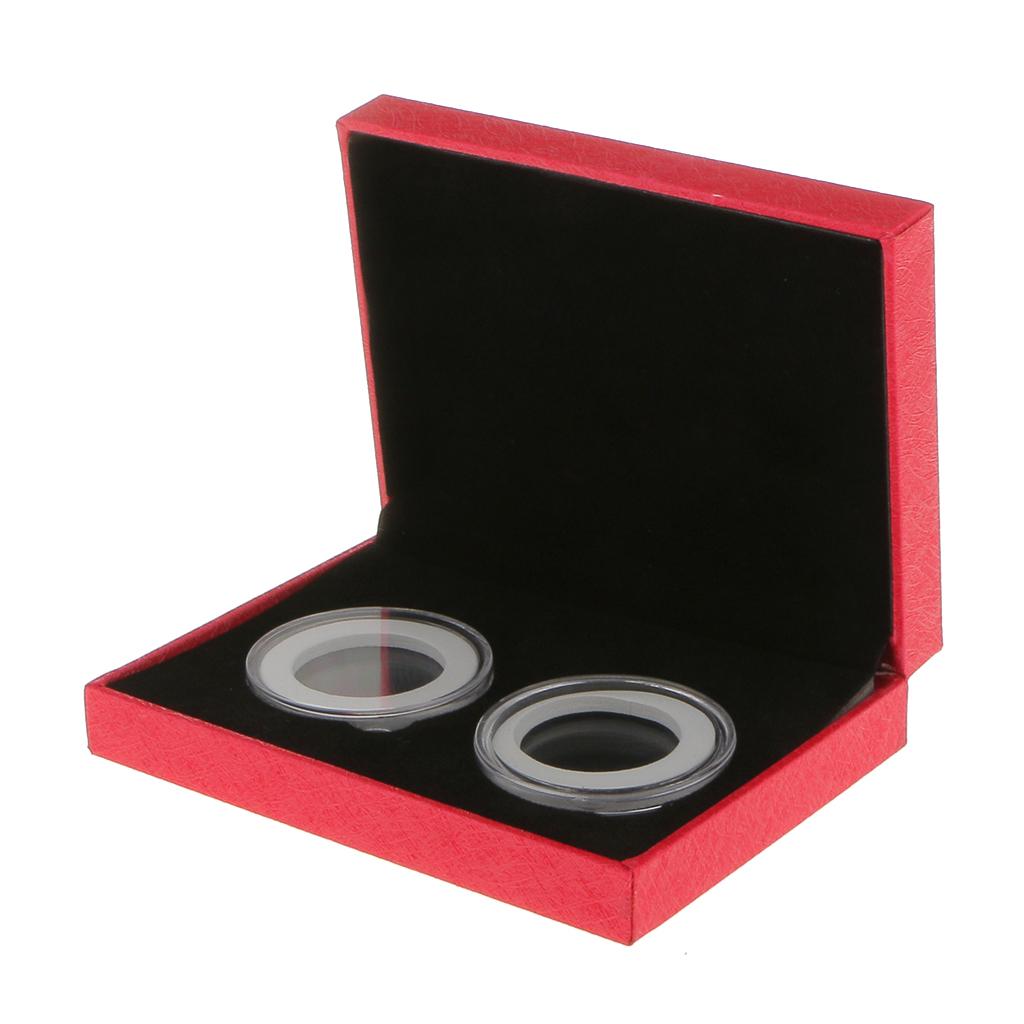 Fancy Double Coins Holder Display for 40MM Commemorative Coins Gift Box Red
