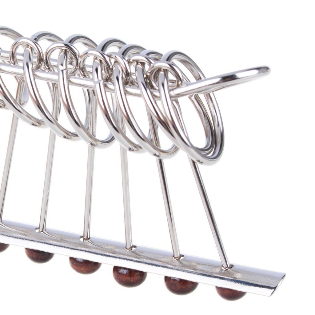 This intelligence toy is an old and traditional Chinese intelligence game. The puzzle may look simple, but it contains lots of mysteries. The objective is to remove all nine rings from the loop, and the solution takes 341 moves, so lots of patience is required.