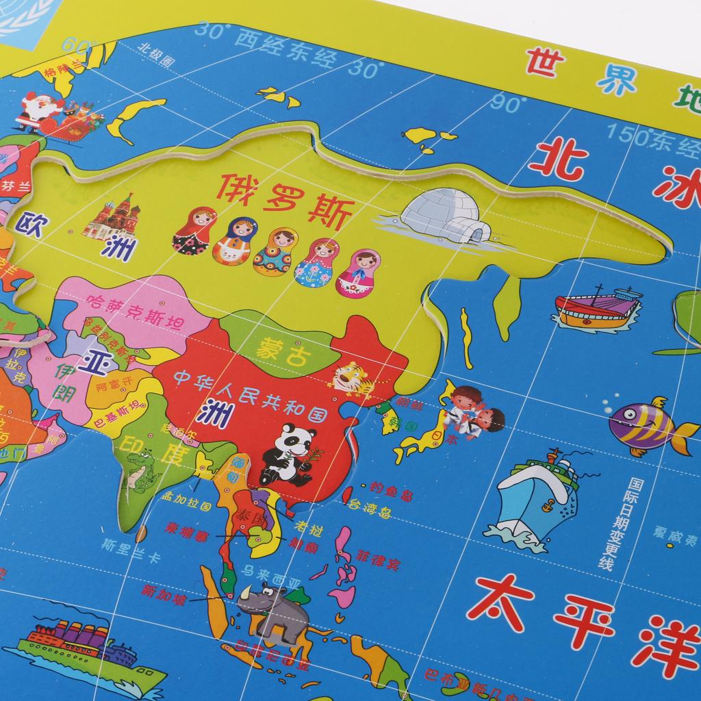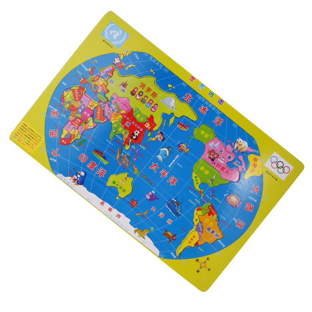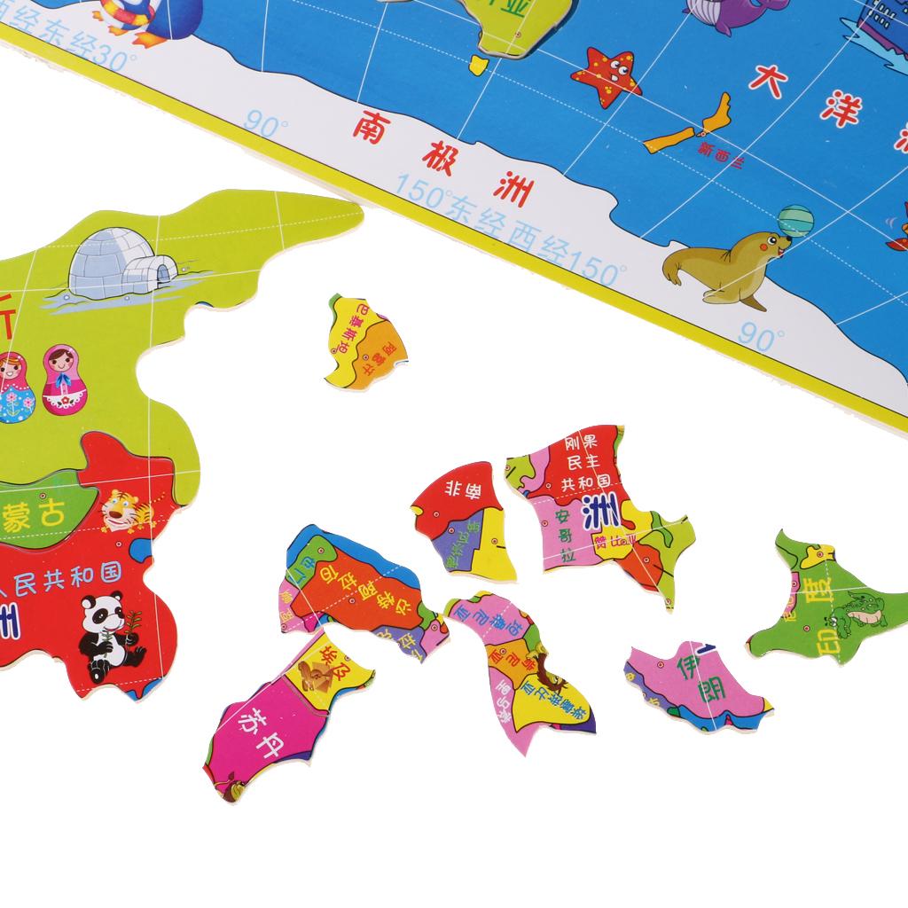 35 Pieces Wooden Jigsaw World Map Geography Puzzles Game Set