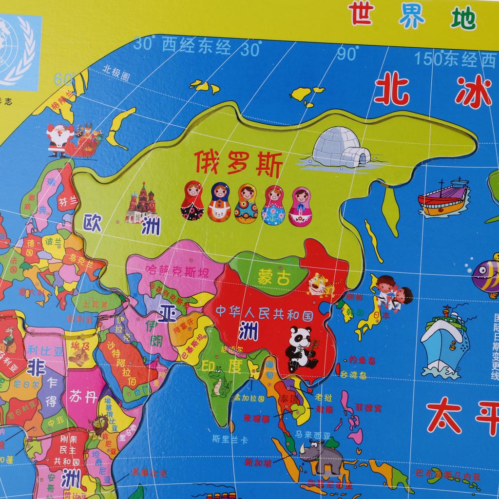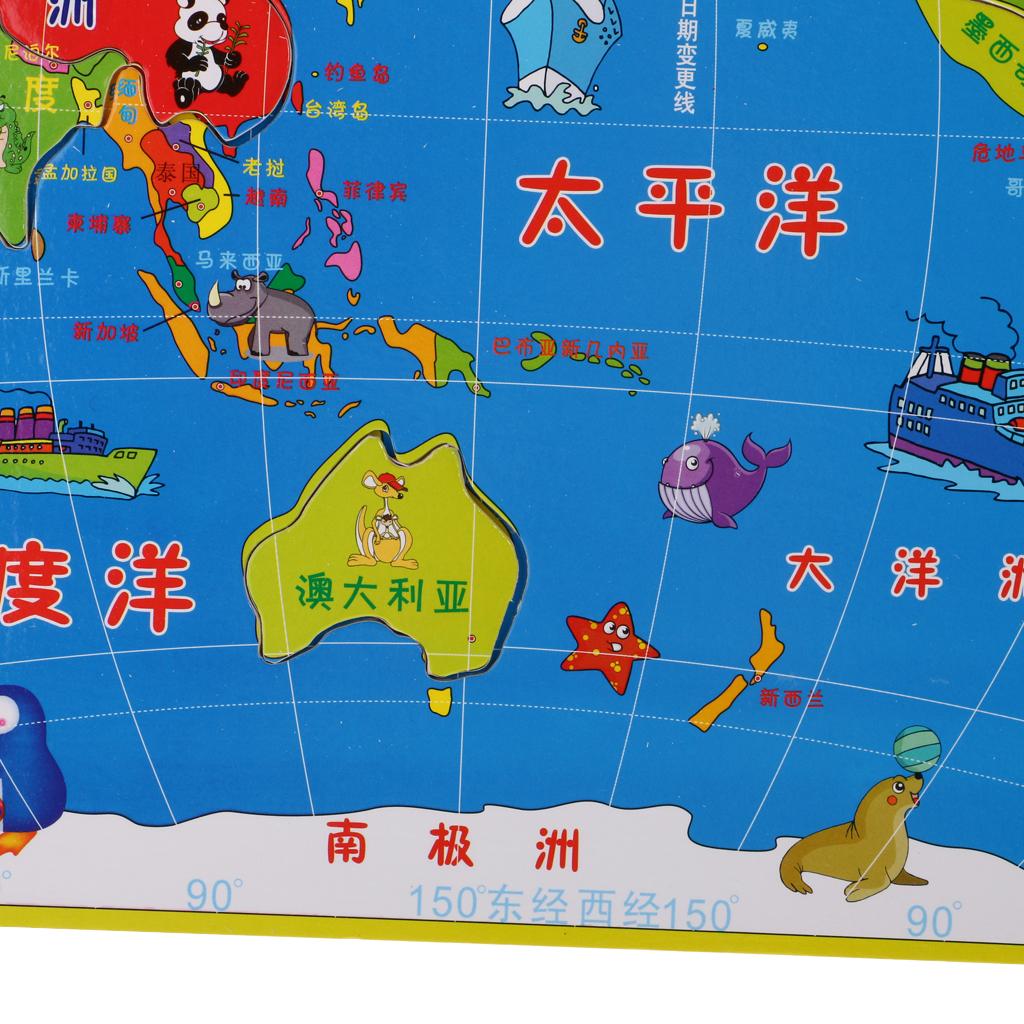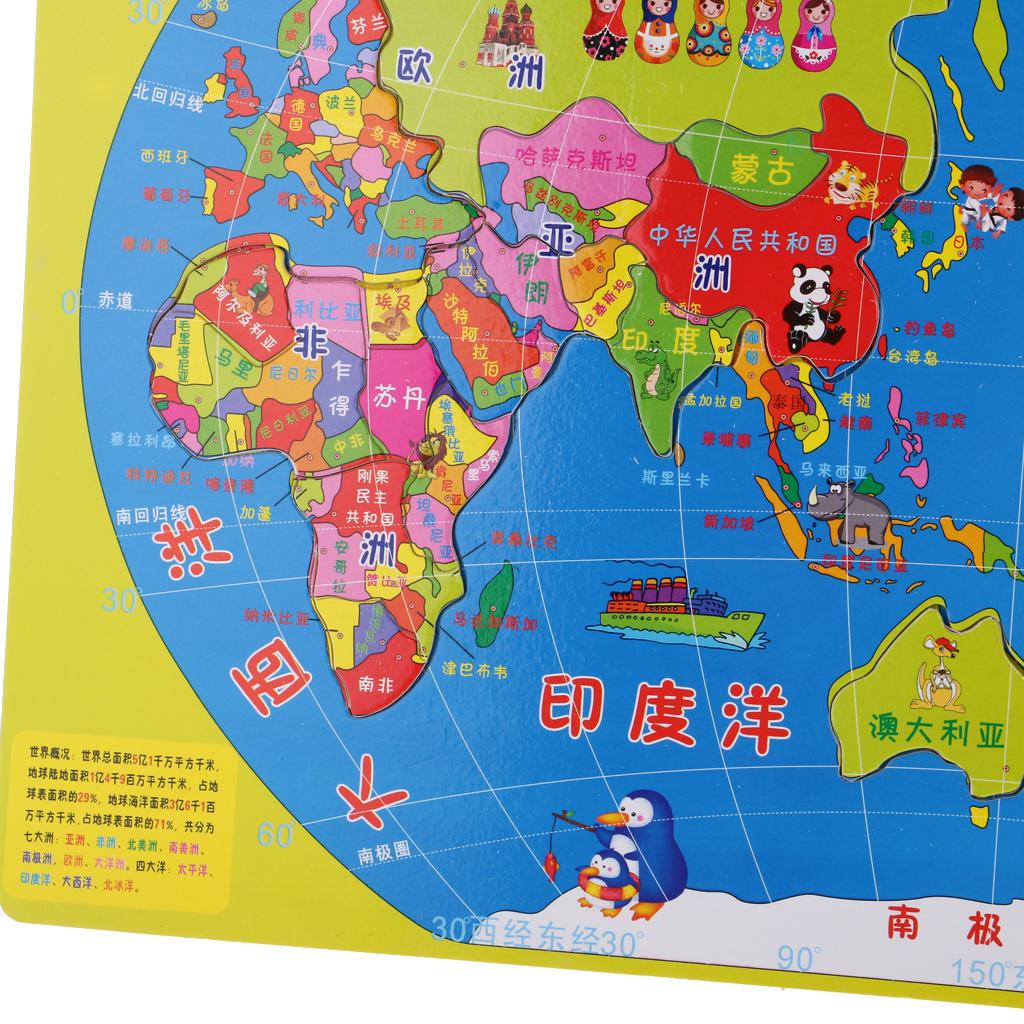 35 Pieces Wooden Jigsaw World Map Geography Puzzles Game Set