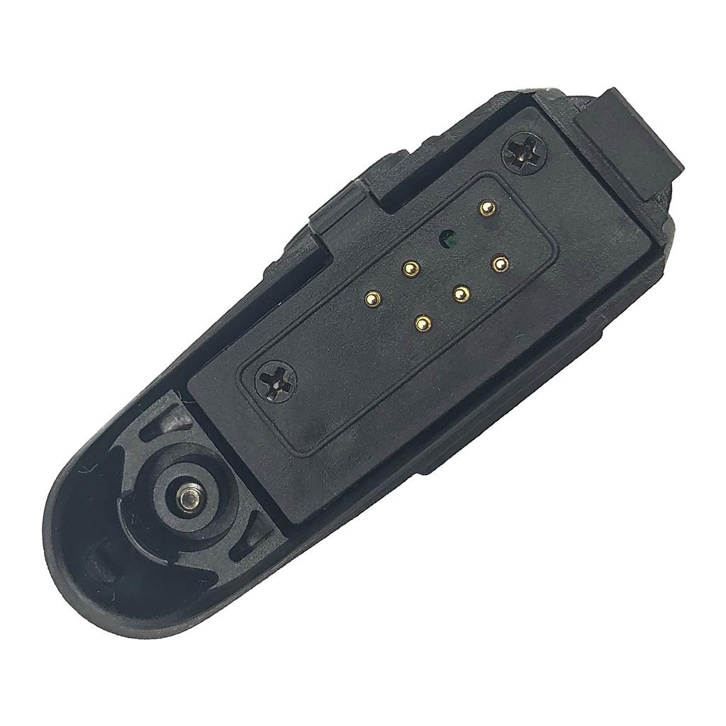 Adapts your radio's multi-pin audio accessory connector to use two pin connector.