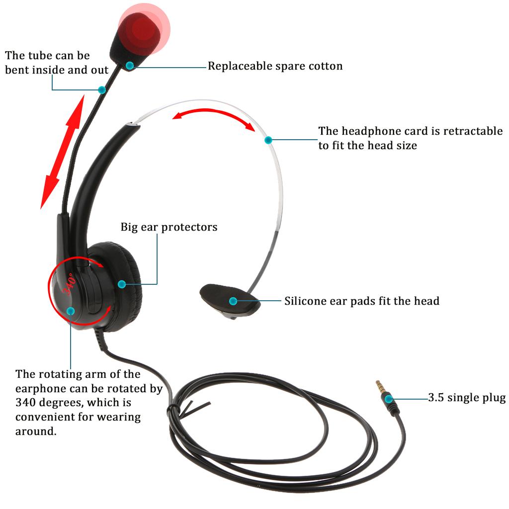 Comfortable Headset: Monaural over-the-head style headset can be worn on either ear, extremely lightweight design and comes with soft ear cushion for added comfort, adjustable headband and microphone enhances user experience.