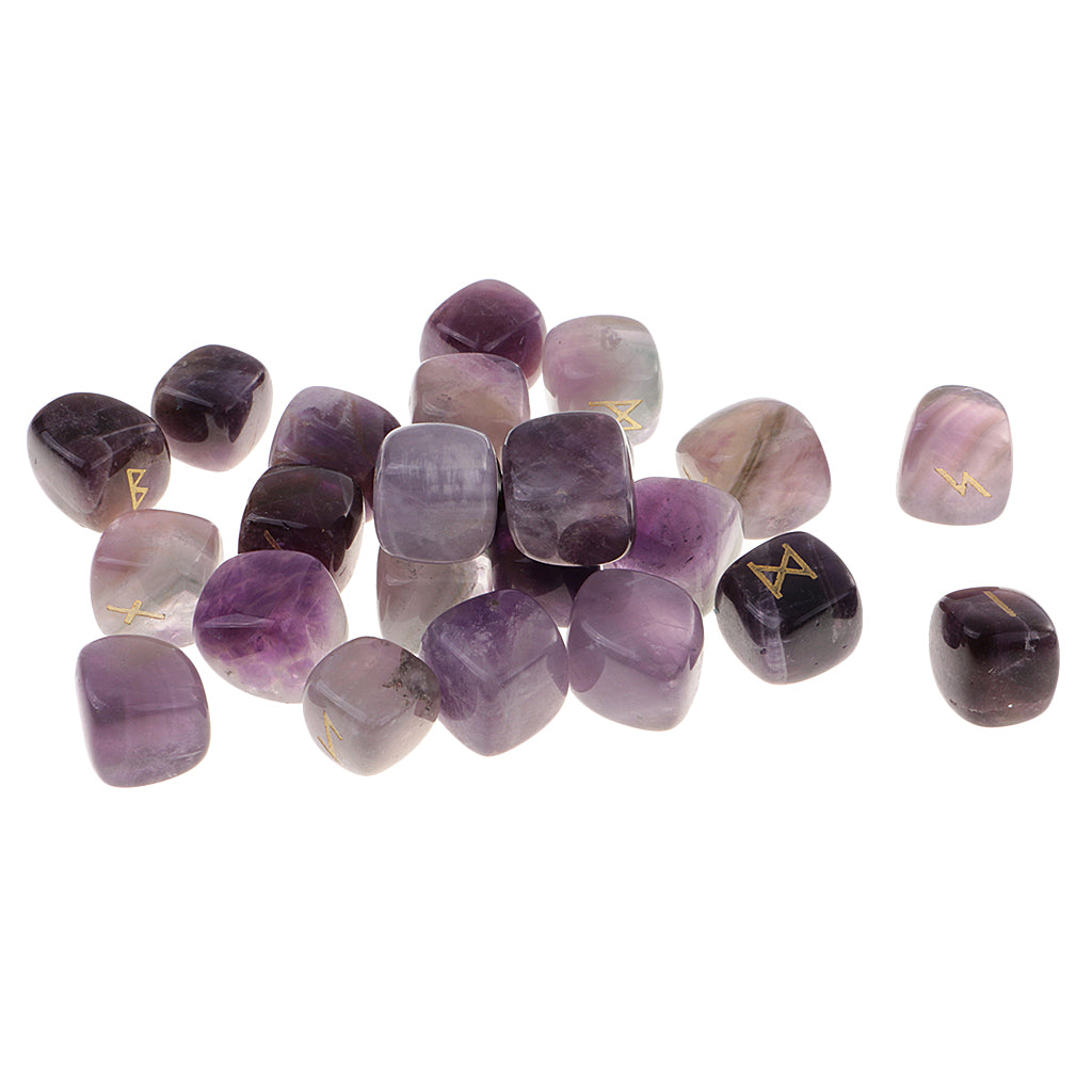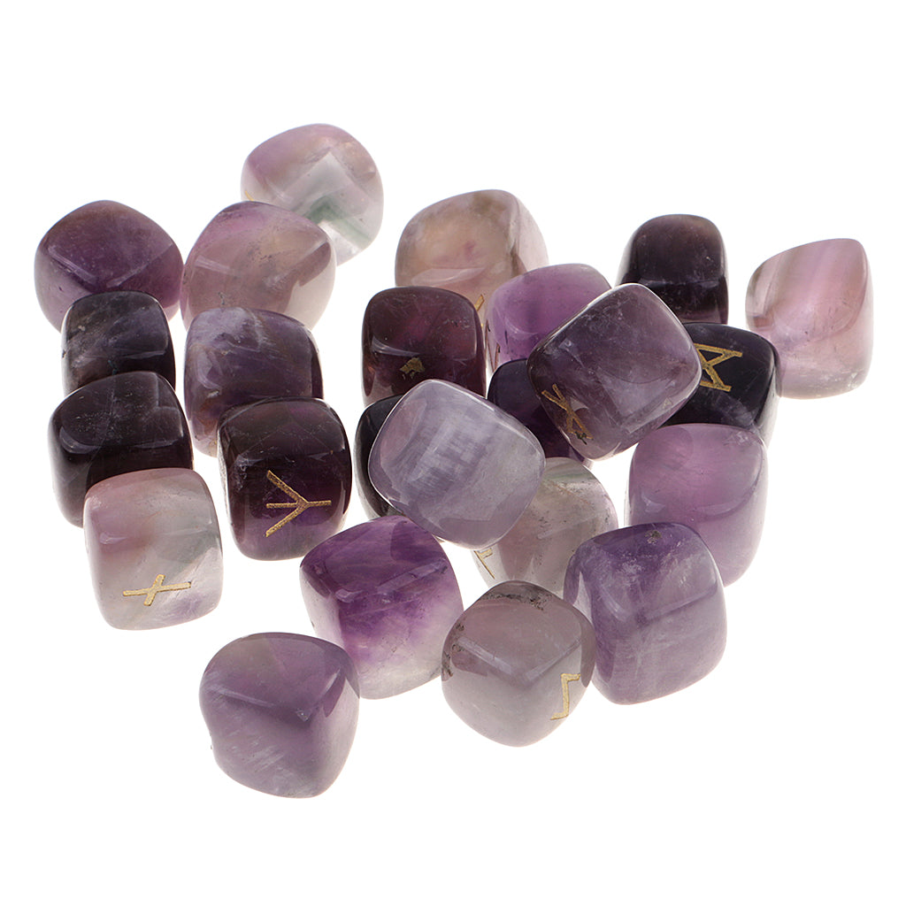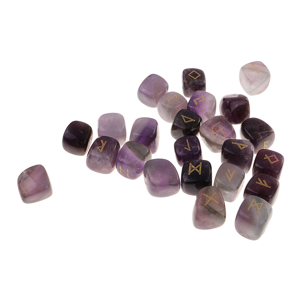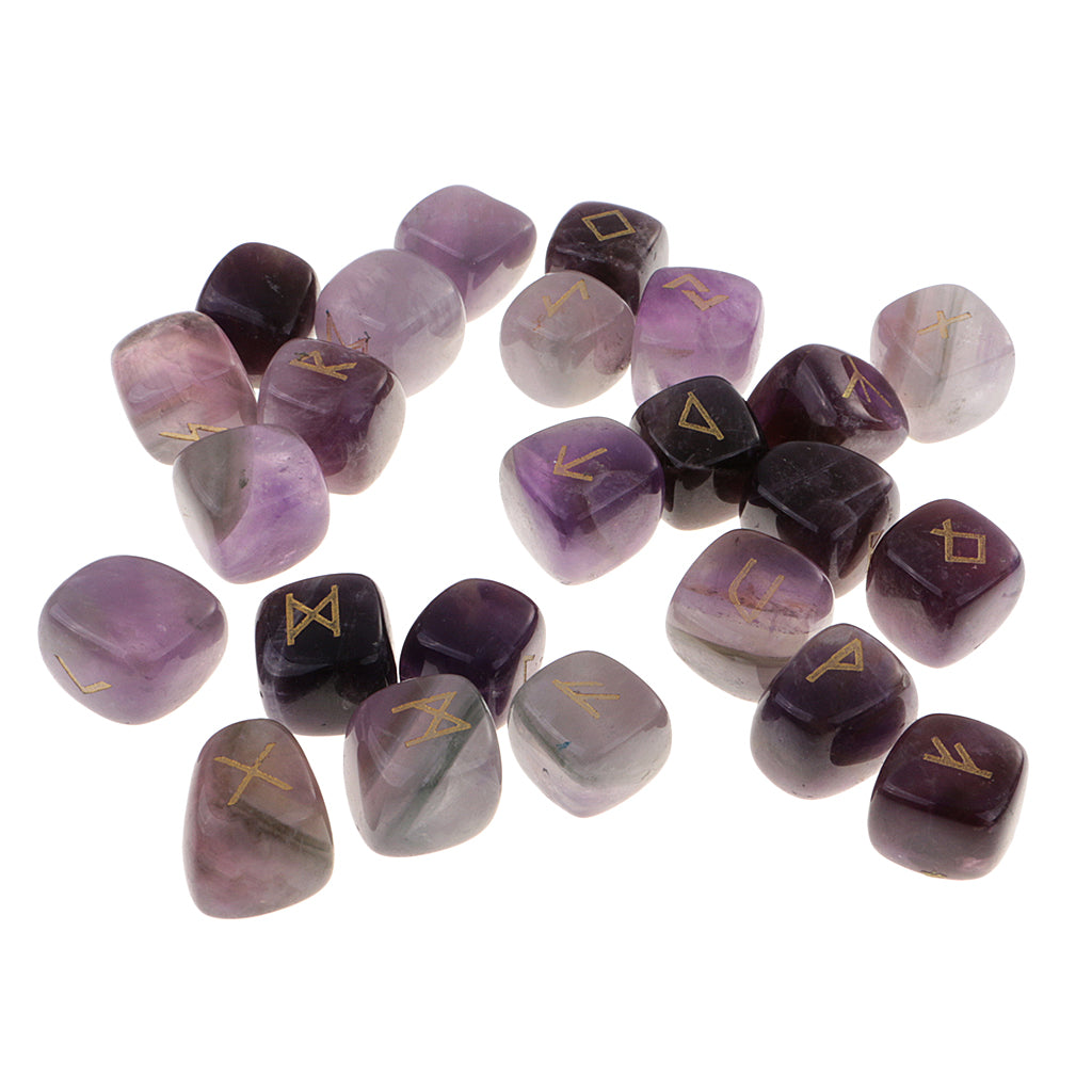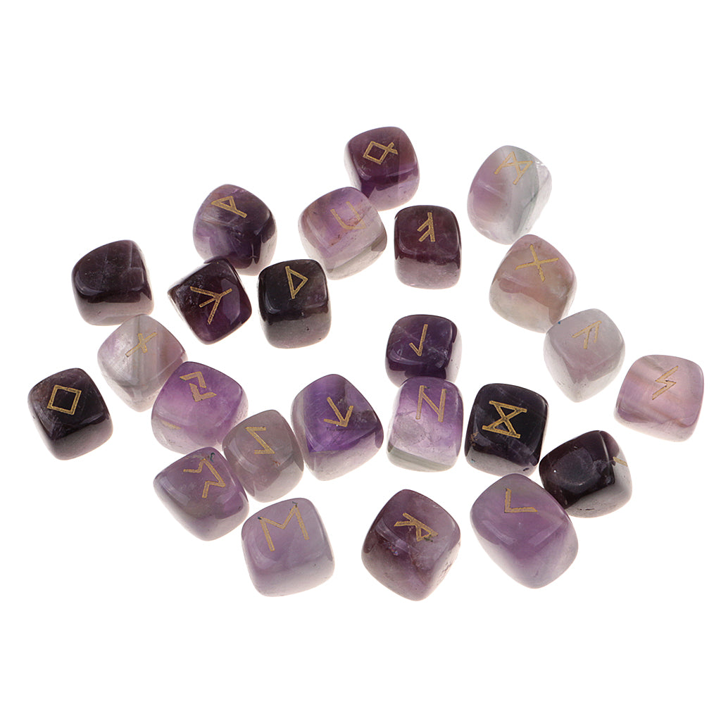25 Pieces Rune Stones Crystal Hand Carved Gemstone Runic Wicca Witch Purple