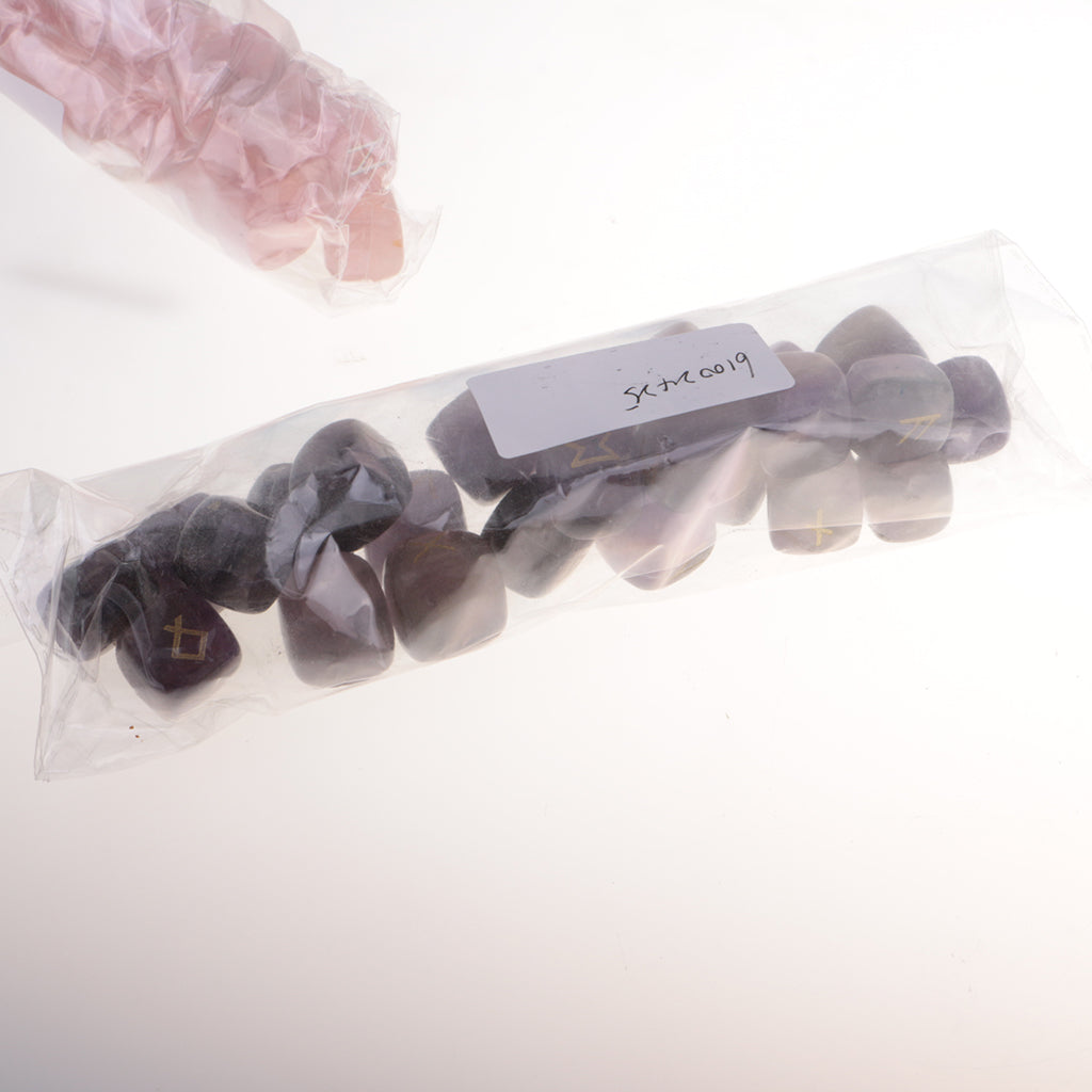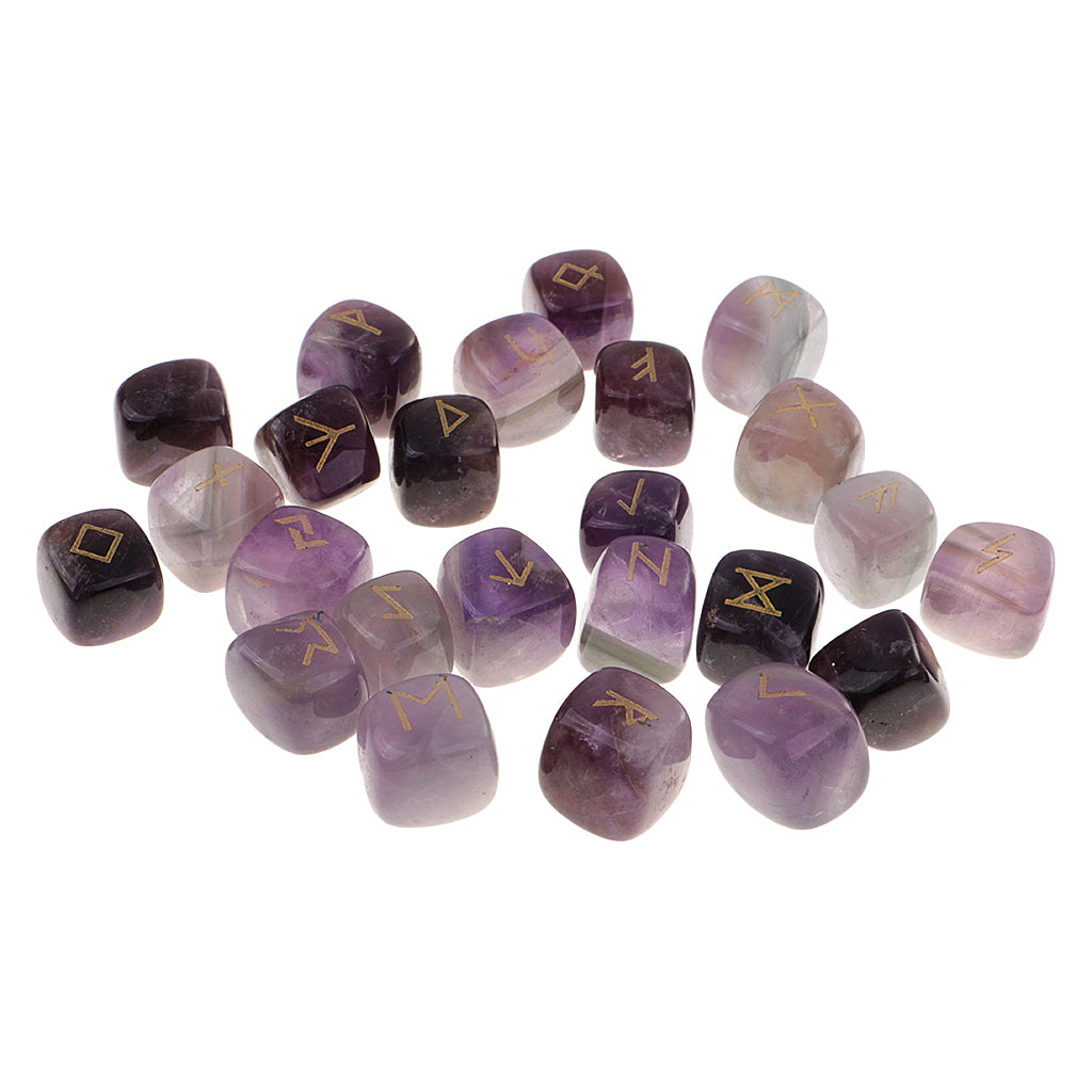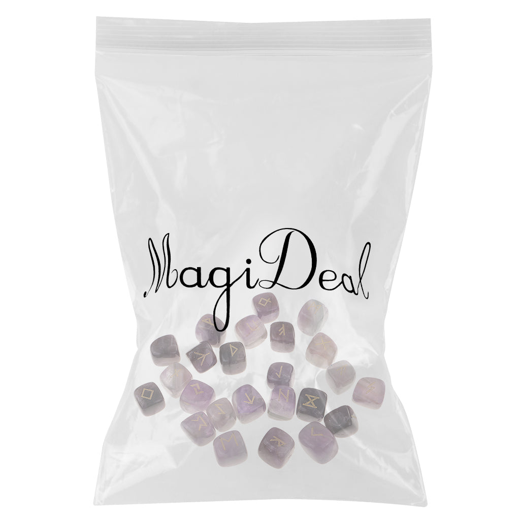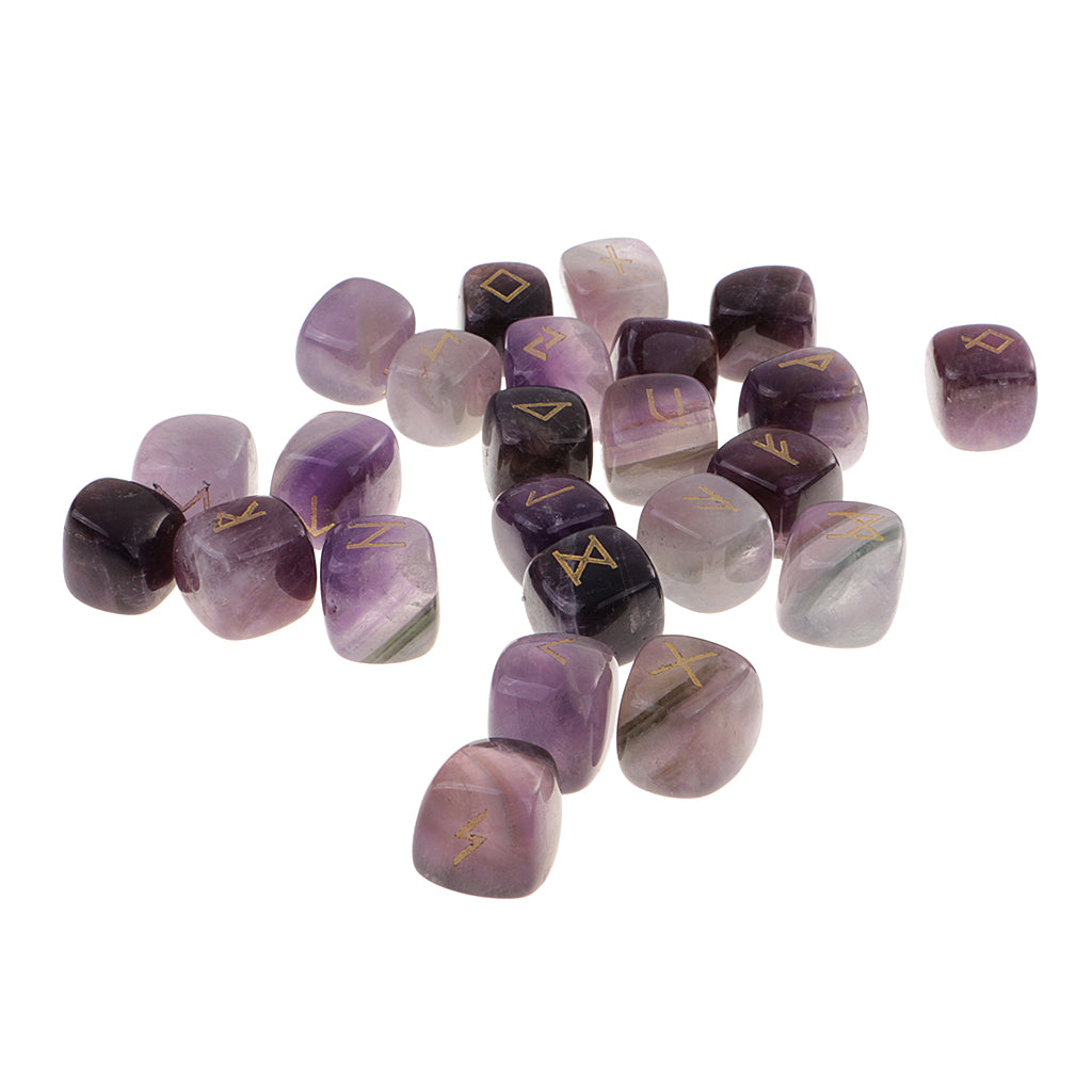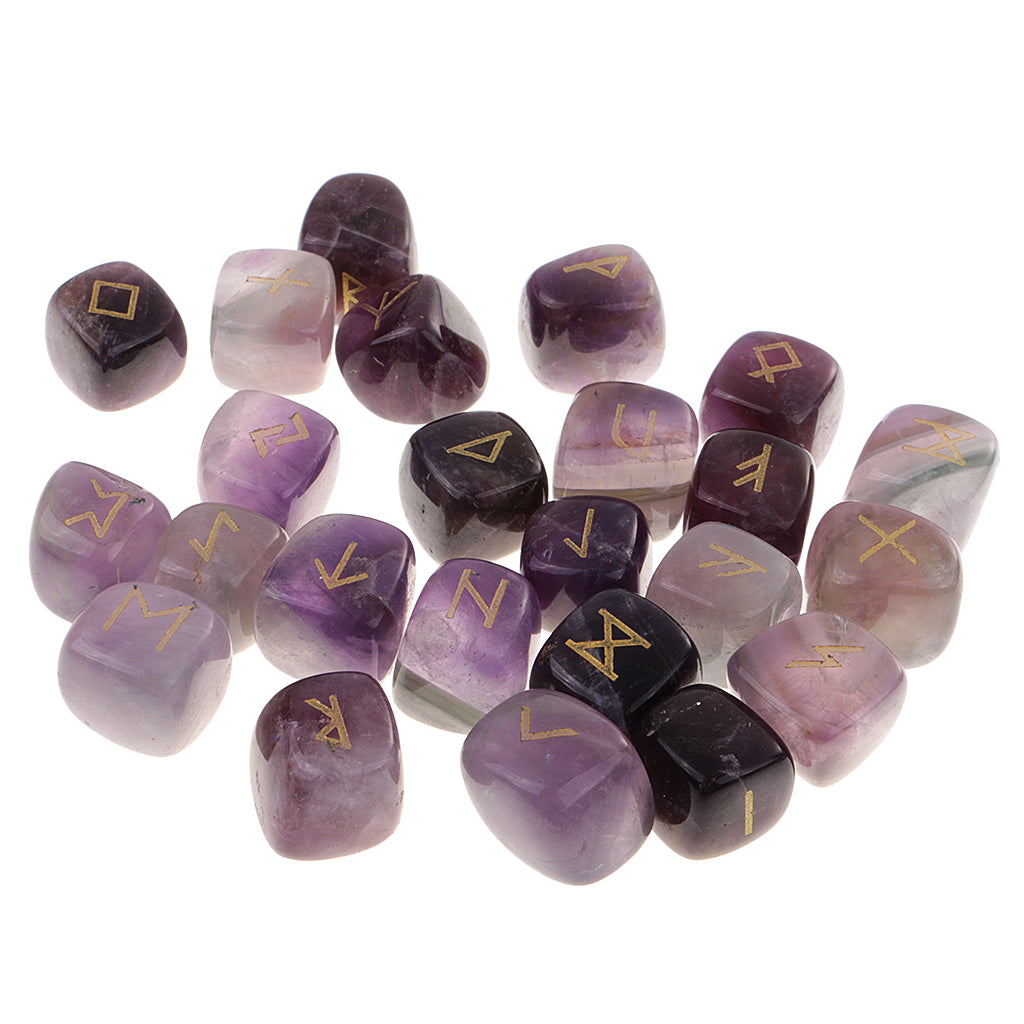 25 Pieces Rune Stones Crystal Hand Carved Gemstone Runic Wicca Witch Purple