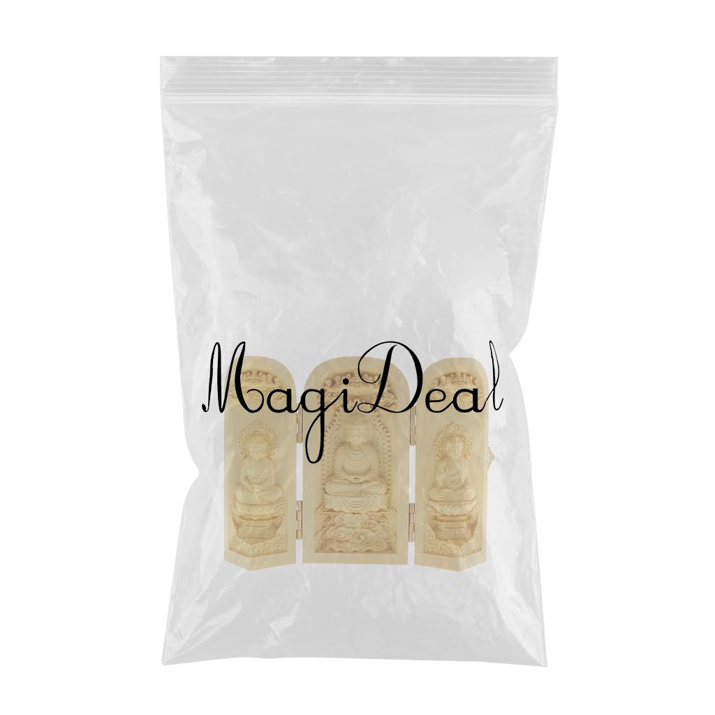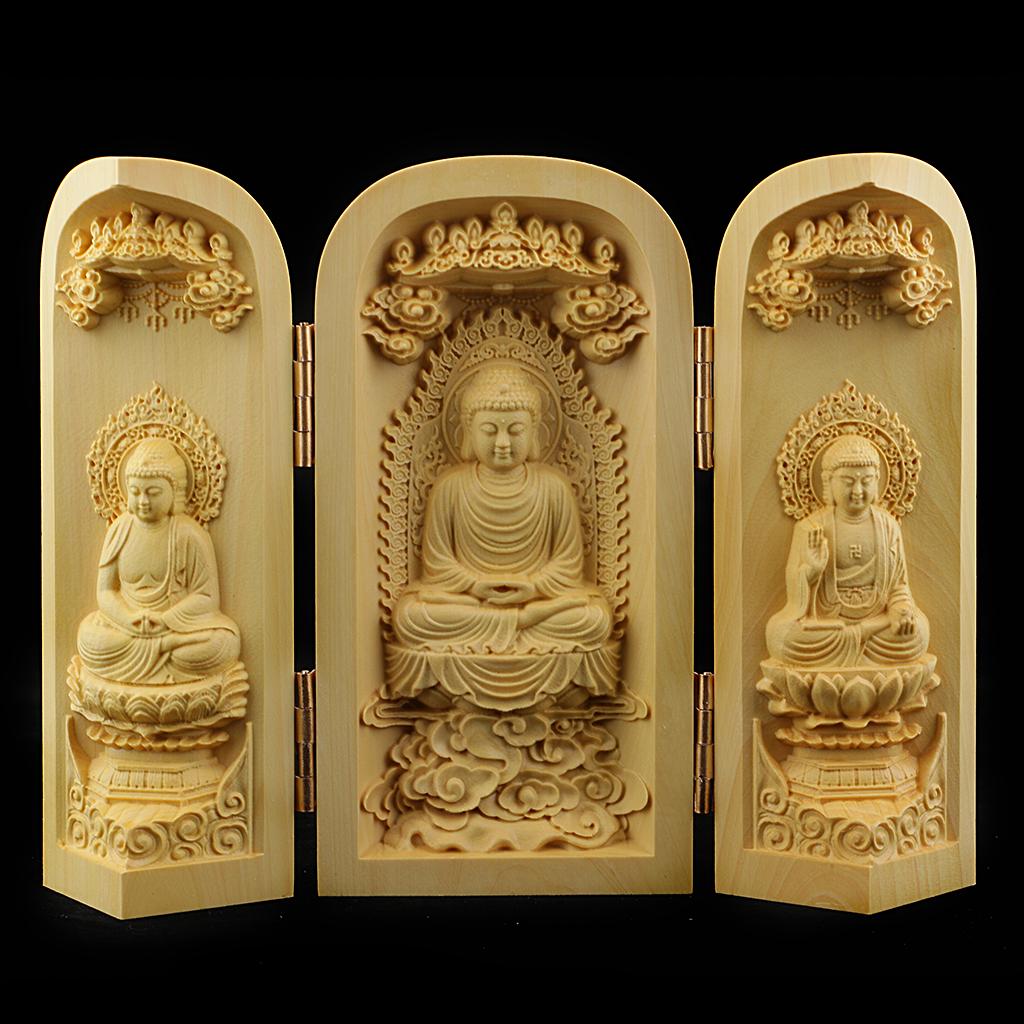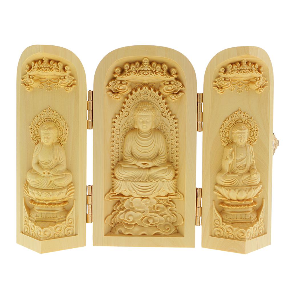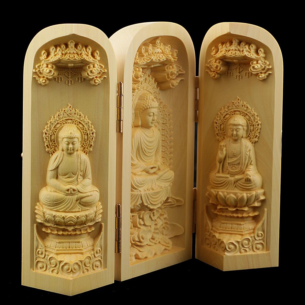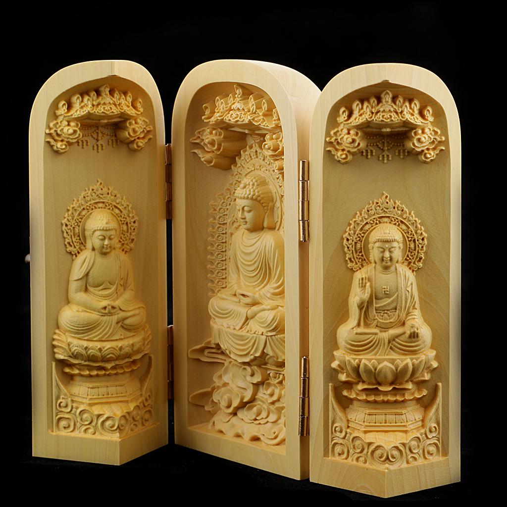 Tibet buddhism Boxwood Carving kwan-yin Avalokitesvara buddha 3 God Statue Box