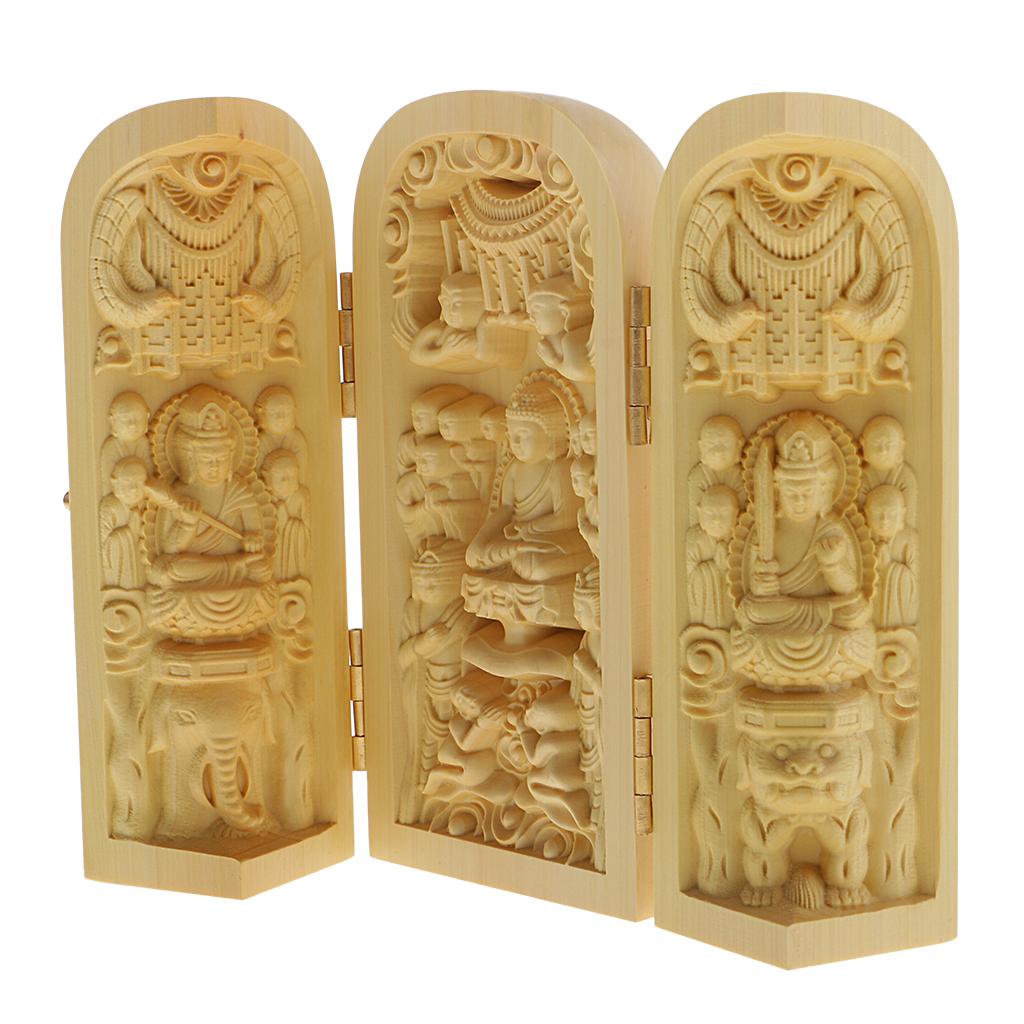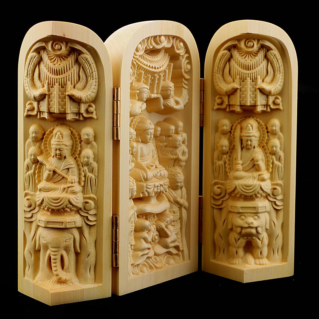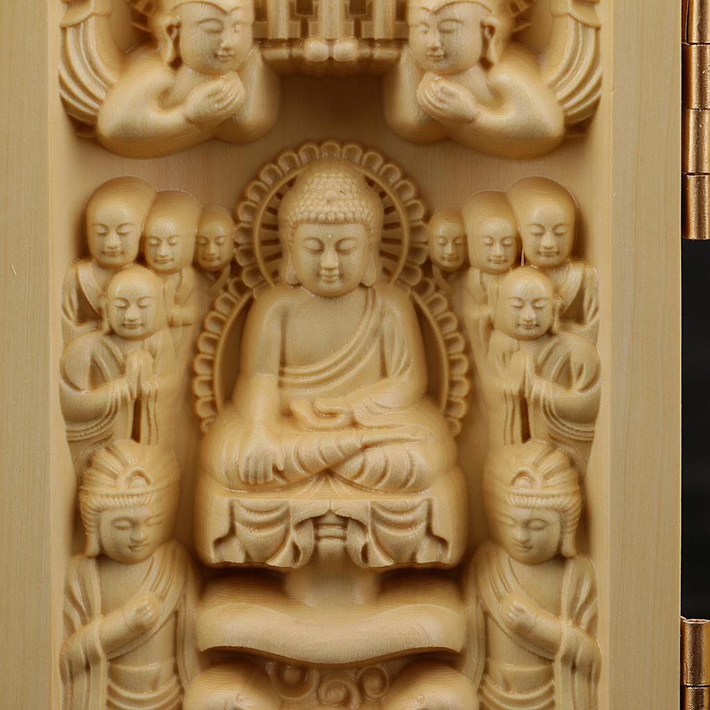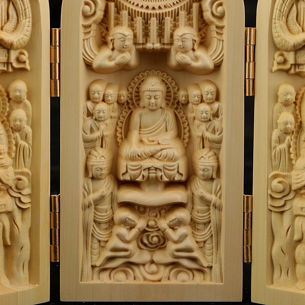 Tibet buddhism Boxwood Carving kwan-yin Avalokitesvara buddha 3 God Statue Box