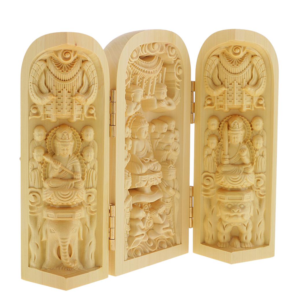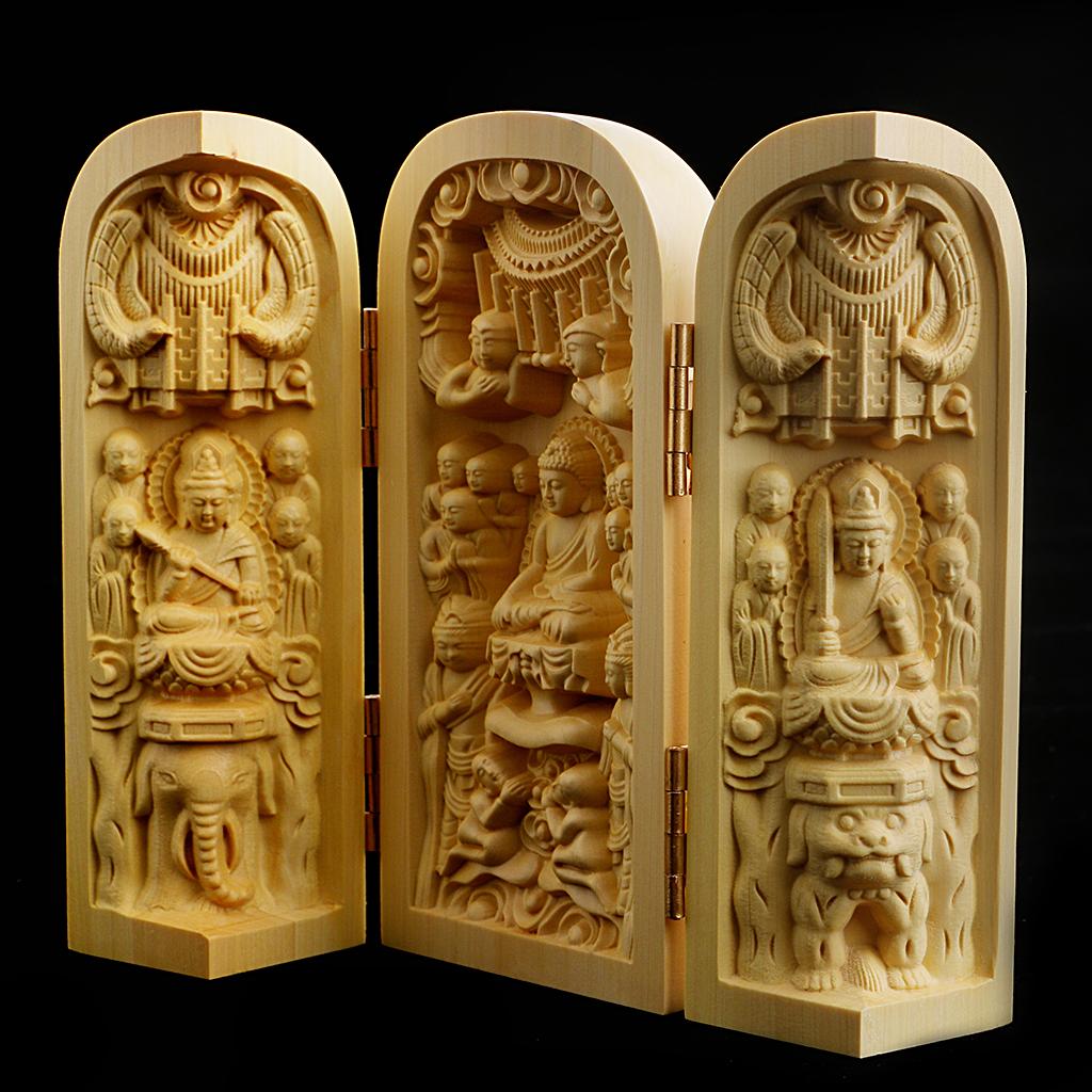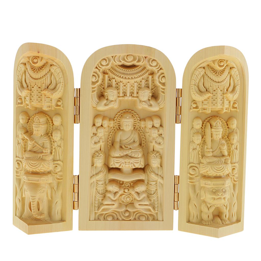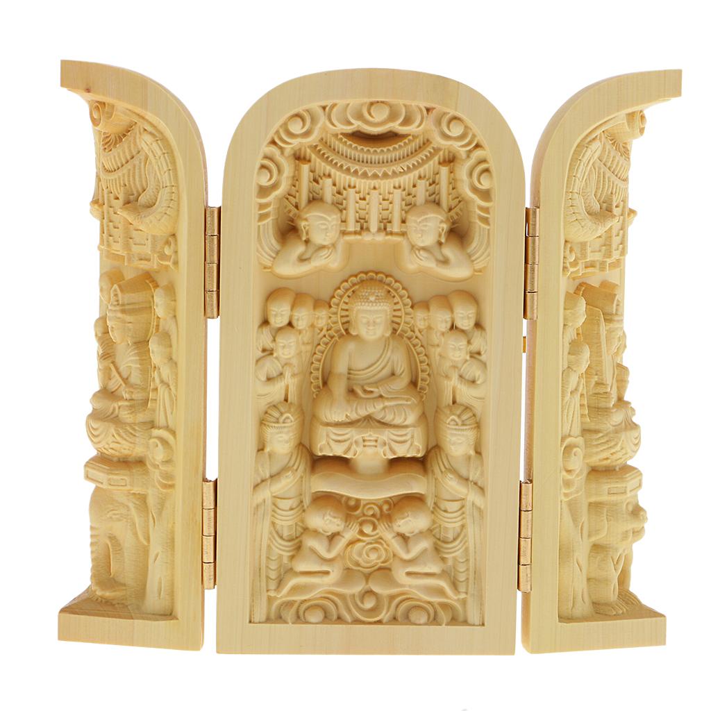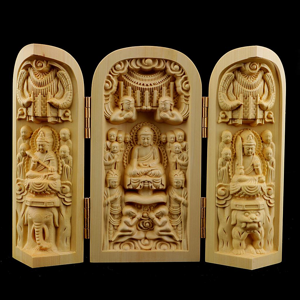 Tibet buddhism Boxwood Carving kwan-yin Avalokitesvara buddha 3 God Statue Box