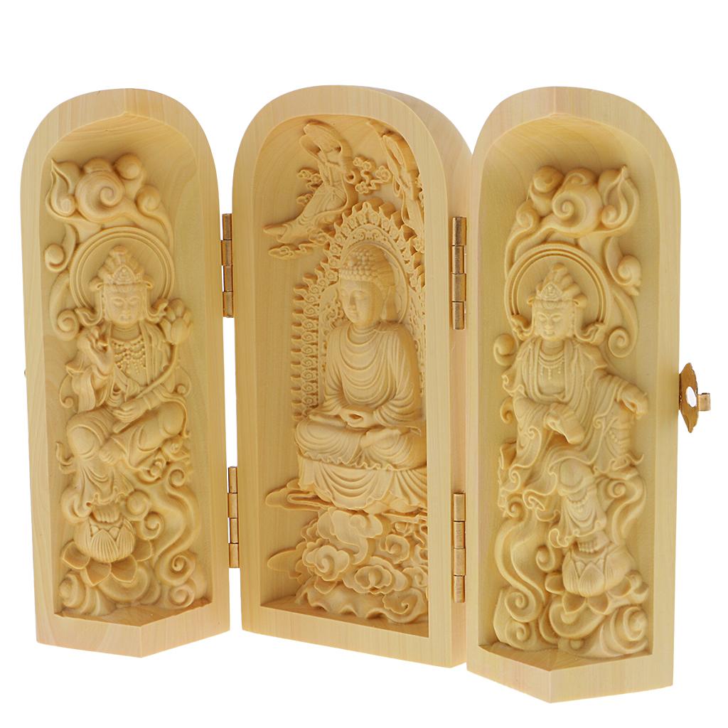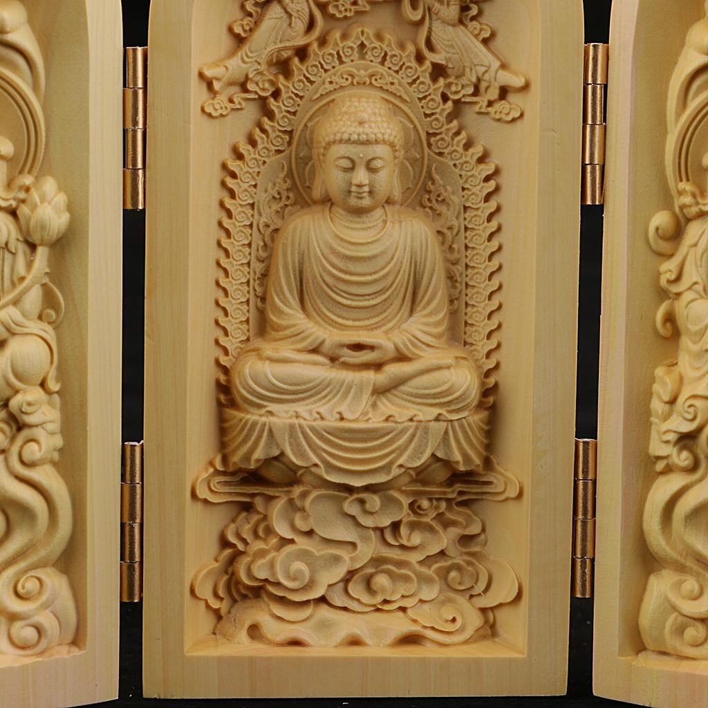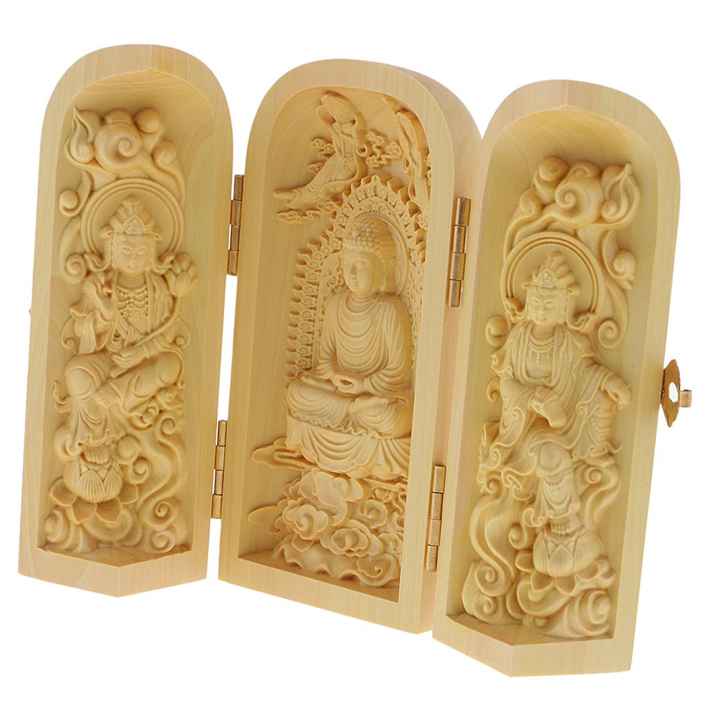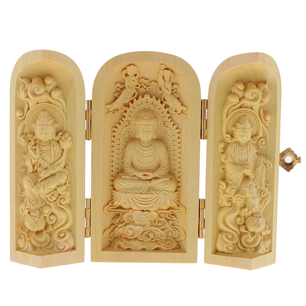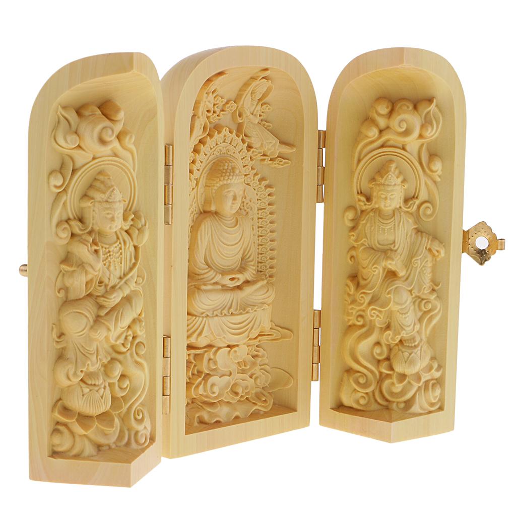 Buddha Statue Carved Locker Box Sculpture Decoration Made of Boxwood Style-6