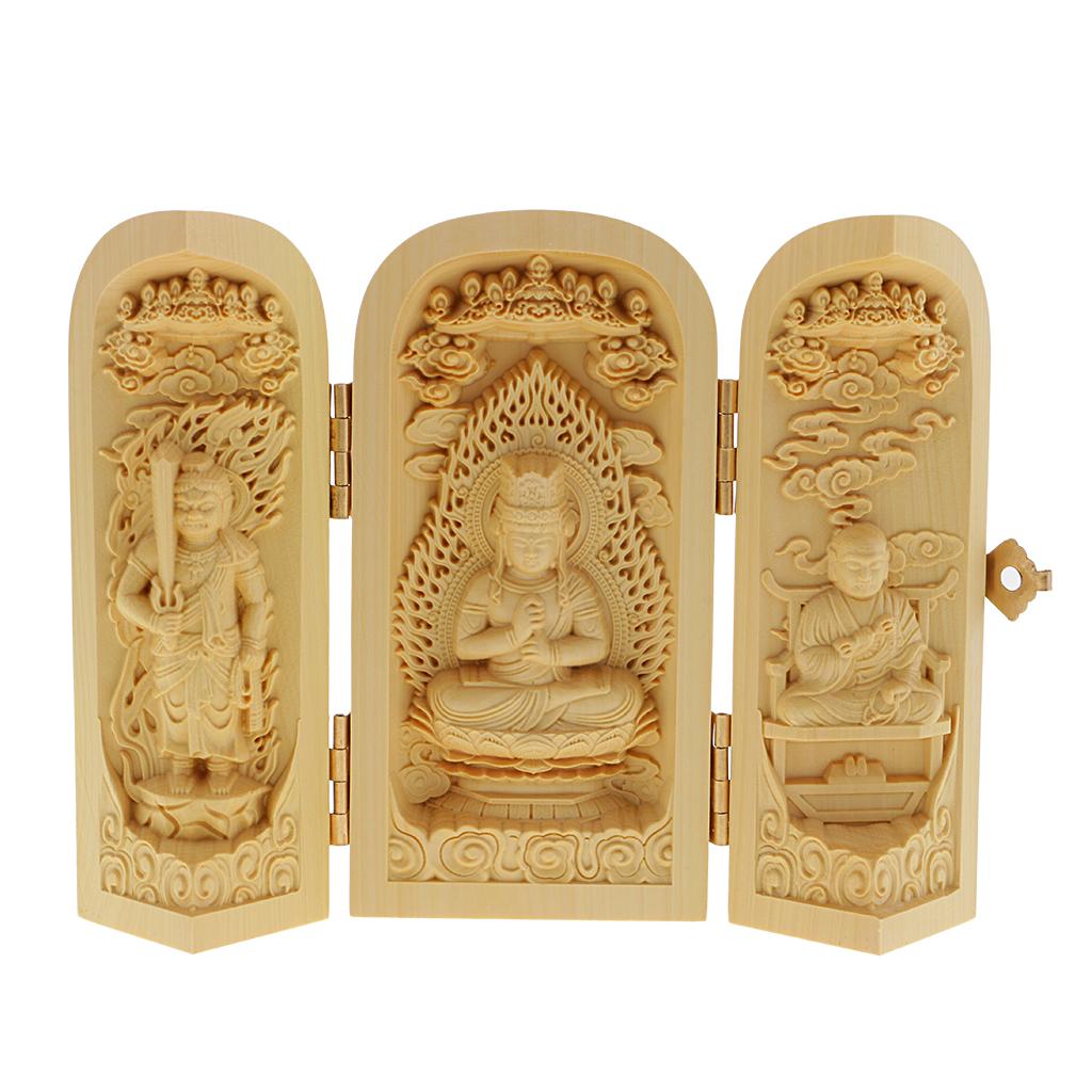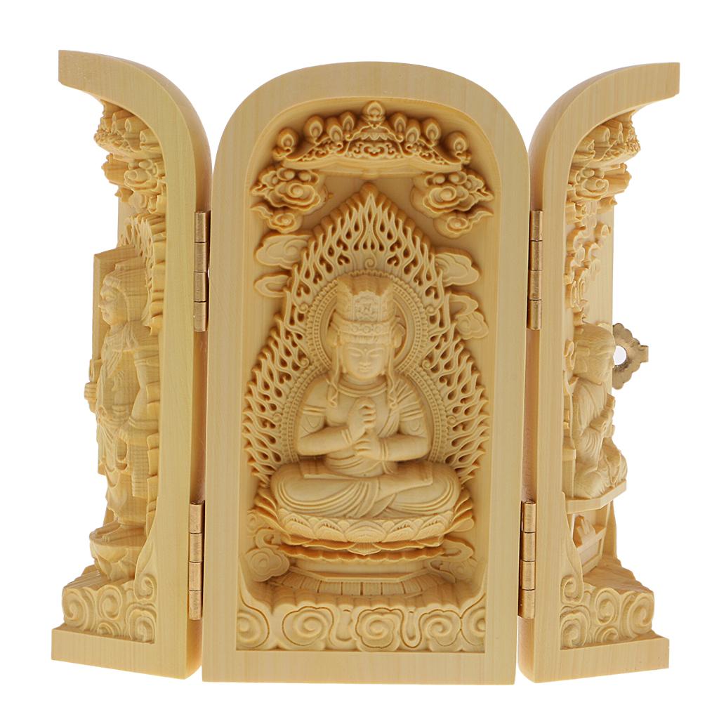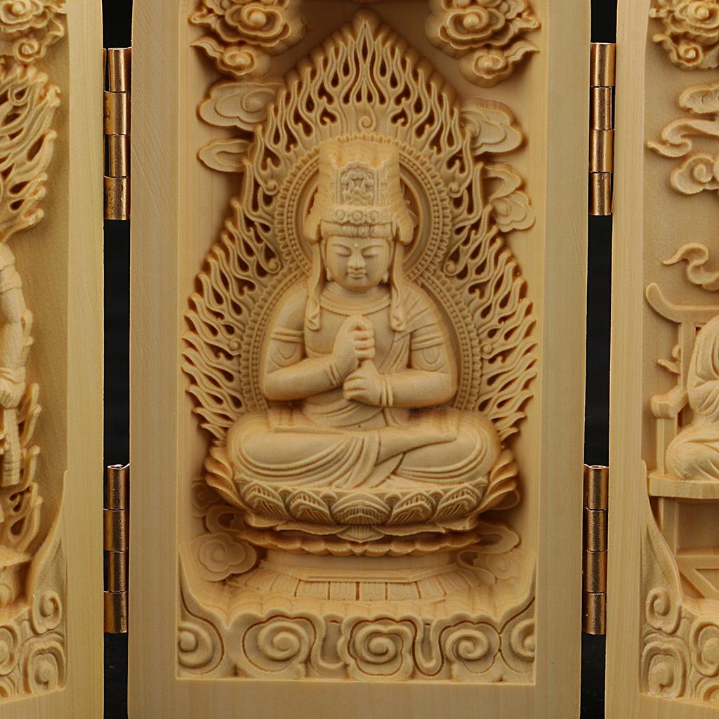 Buddha Statue Carved Locker Box Sculpture Decoration Made of Boxwood Style-7