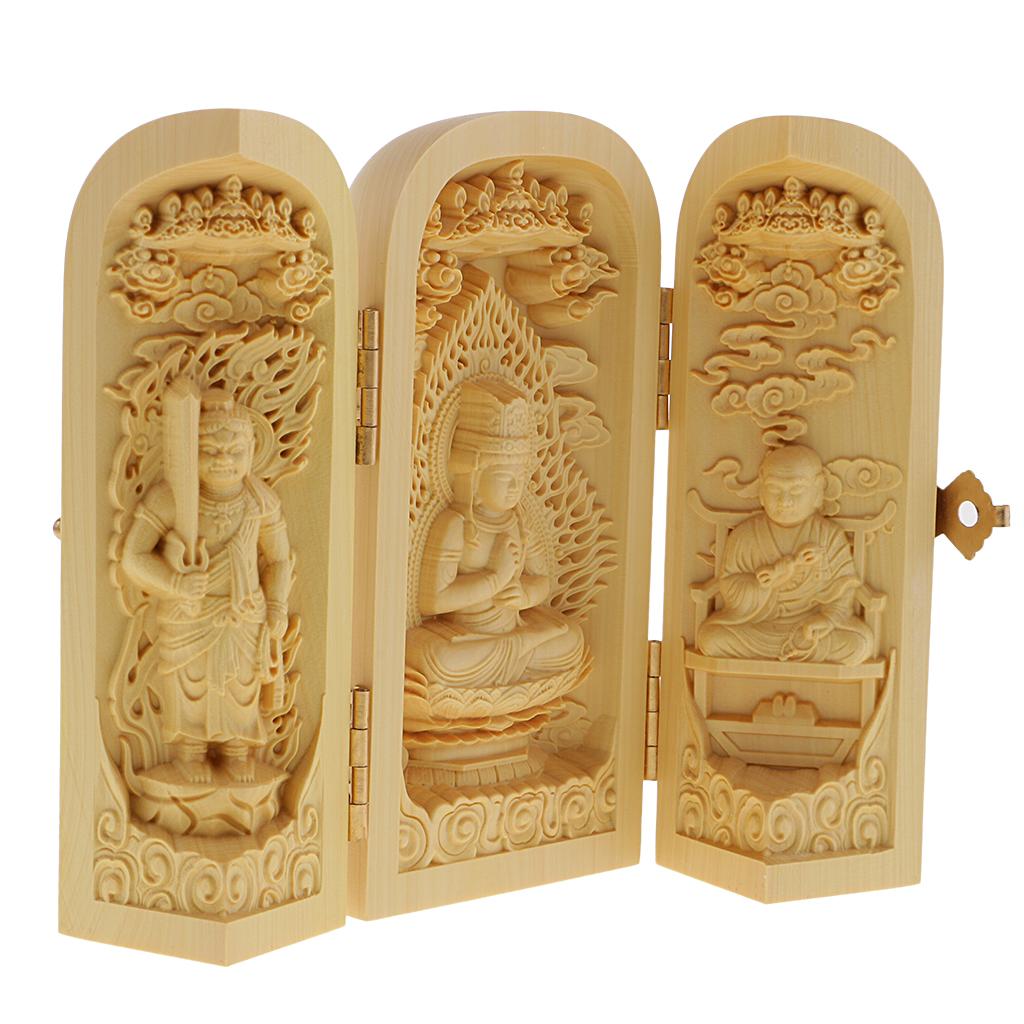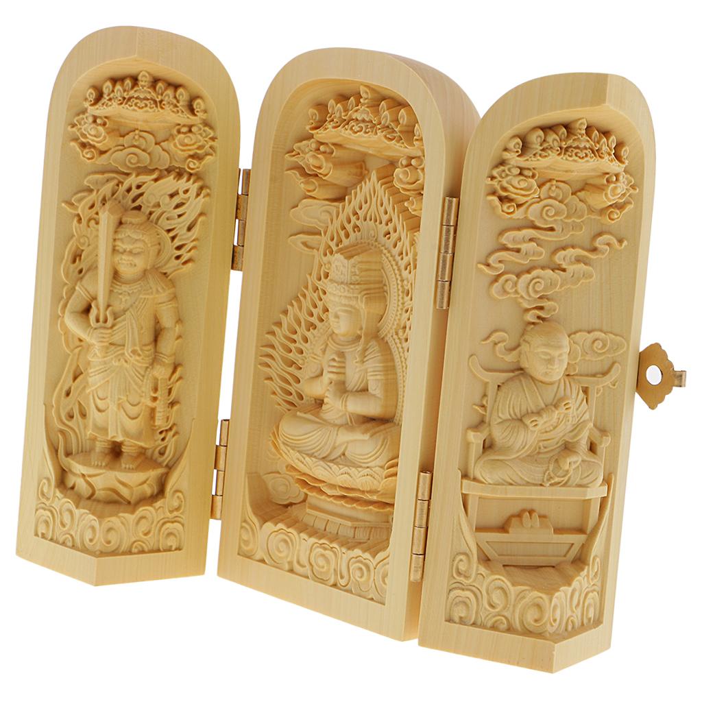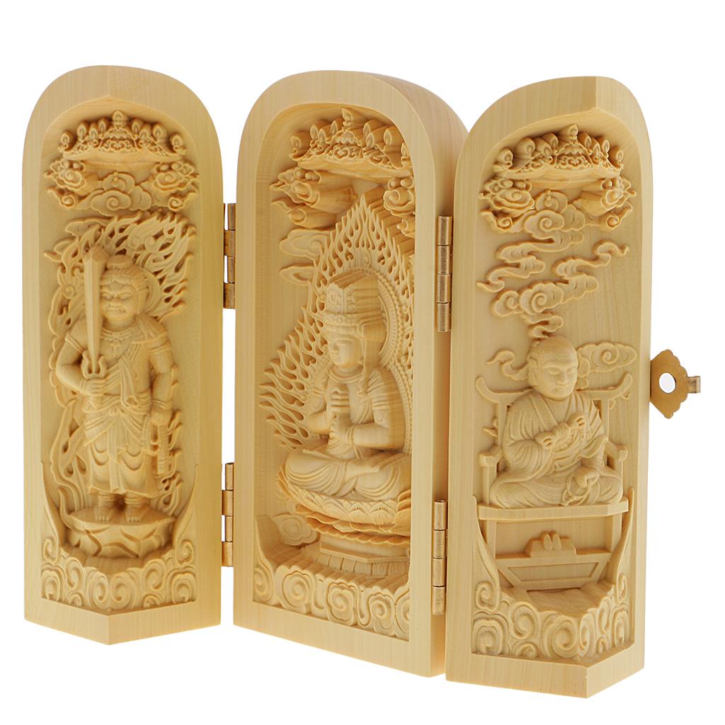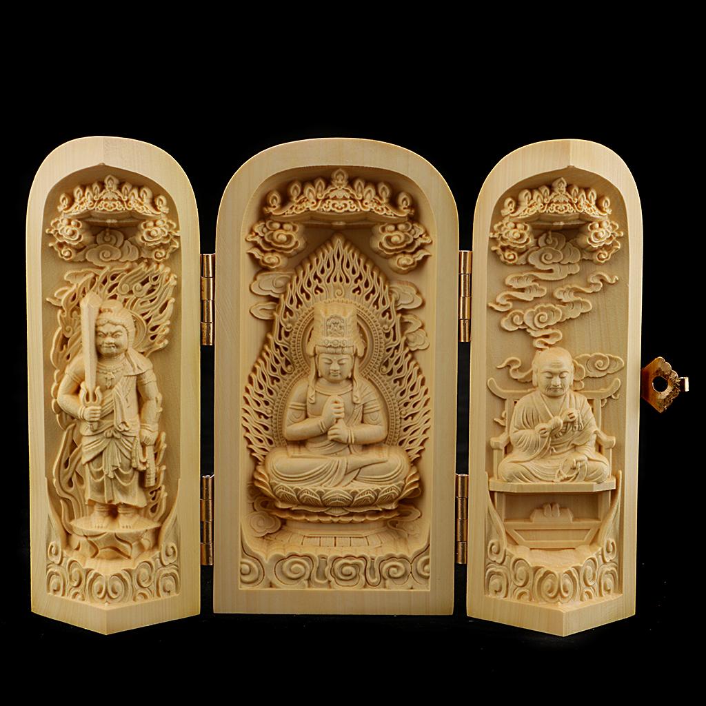 Buddha Statue Carved Locker Box Sculpture Decoration Made of Boxwood Style-7