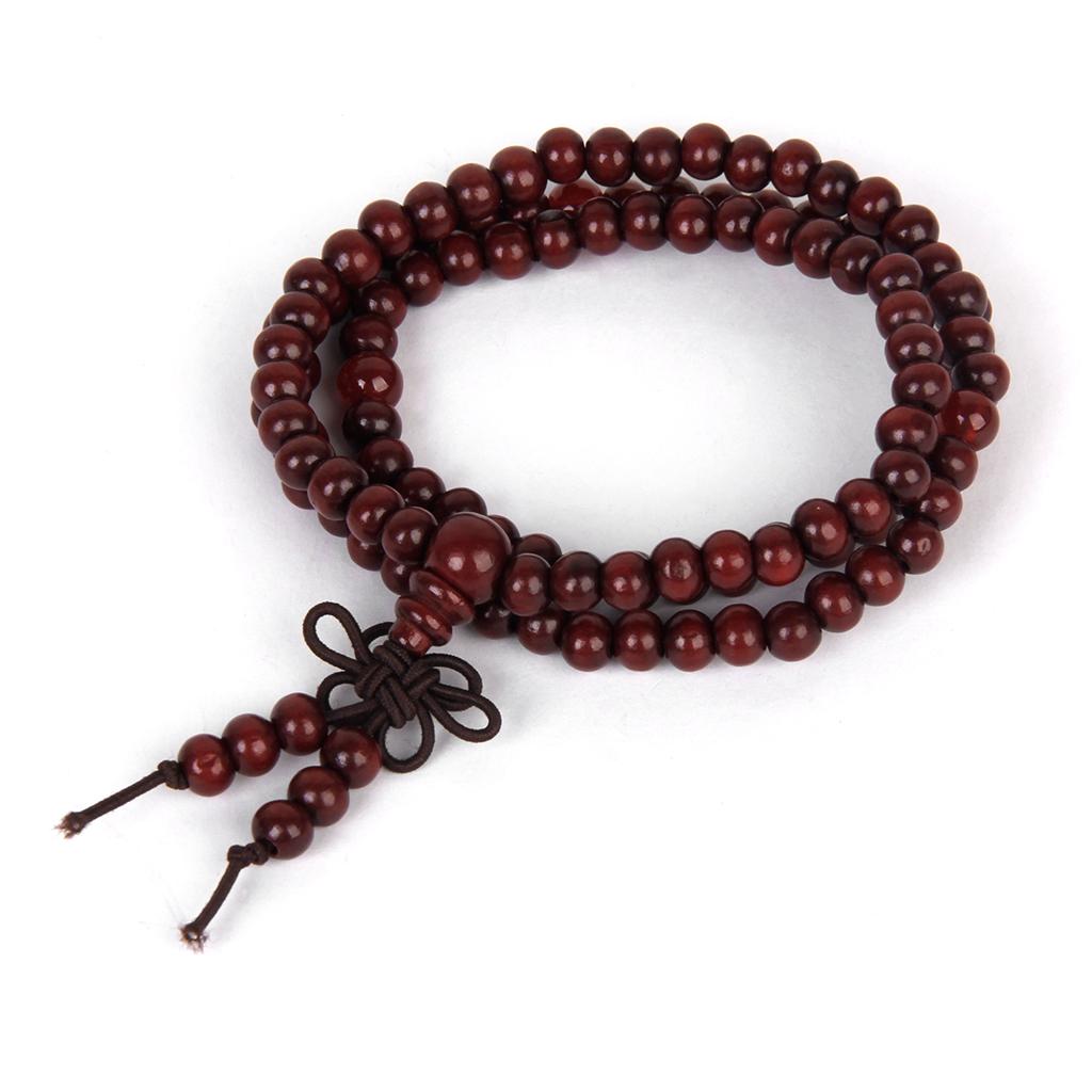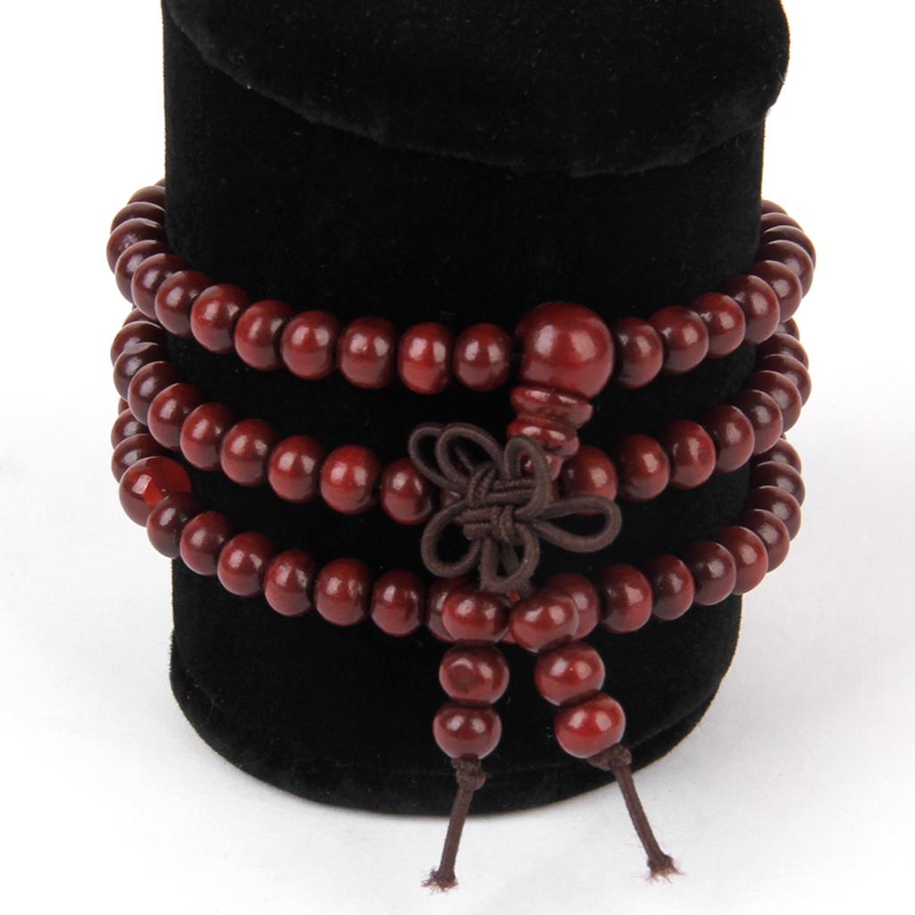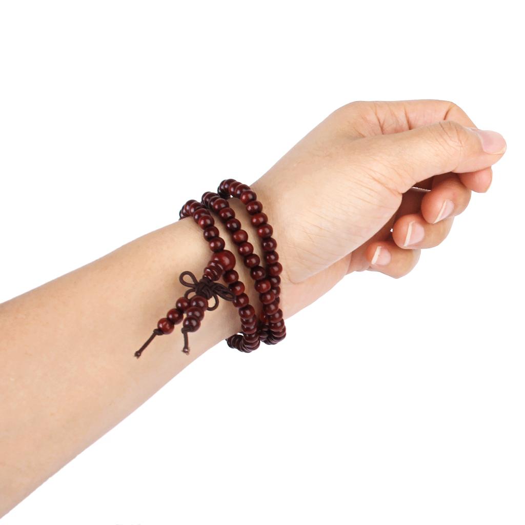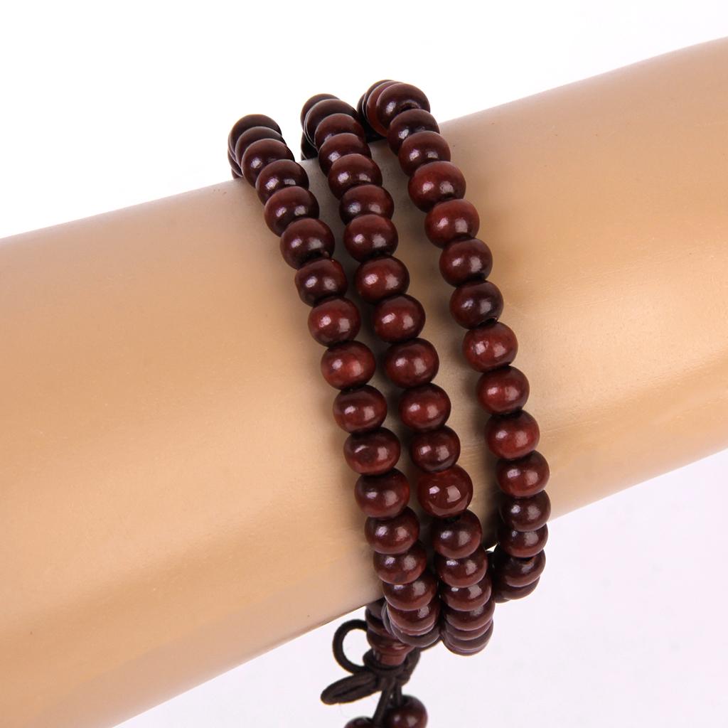 Wooden 6mm 108 Beads Prayer Stretch Buddhist Cuff Bracelet Wristband