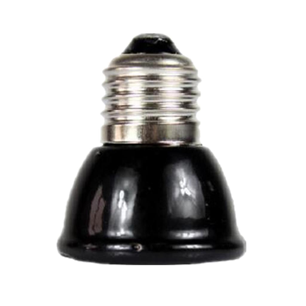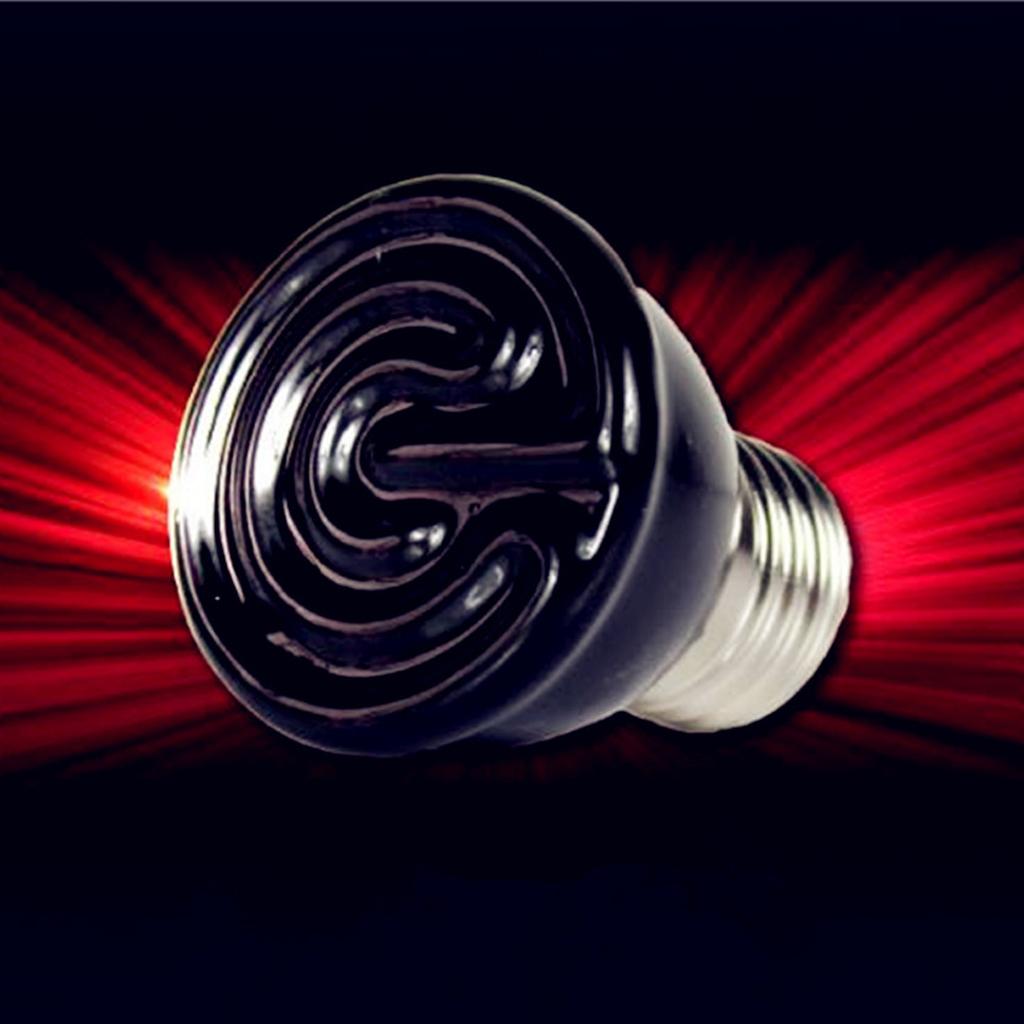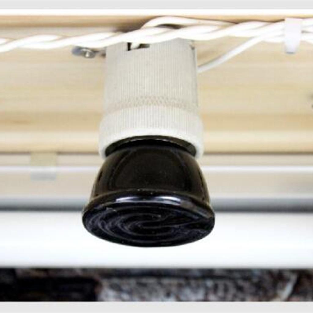 • This black ceramic heat emitter bulb is the perfect 24 hour heat source for all reptiles. These porcelain heating devices screw into a standard porcelain incandescent socket, giving off intense muscle-penetrating infrared heat while emitting no light. The flat-faced design is more efficient and longer lasting than conical designs which build up excess heat internally ultimately carbonizing the element.