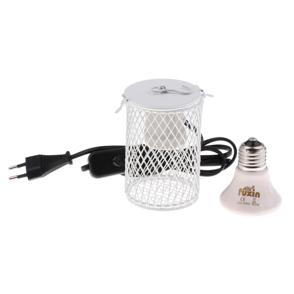 Pet Reptile Ceramic Infrared Heat Lamp Light with Anti-hot Cage White-100W