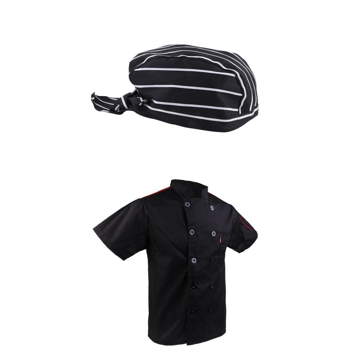 Chefs Hat Cap Kitchen Catering Skull Cap and Unisex Double Breasted Short Sleeve Chef Jacket Coat Cook Hotel Uniform