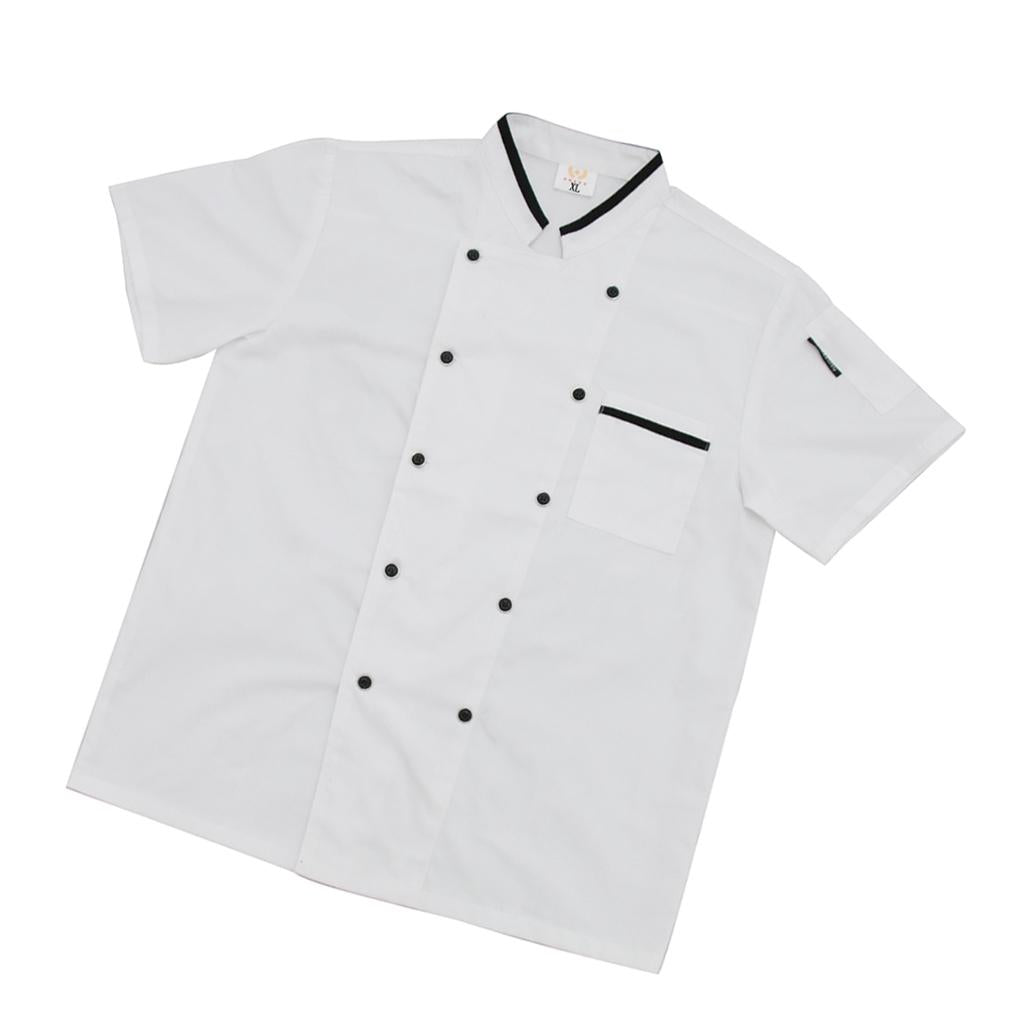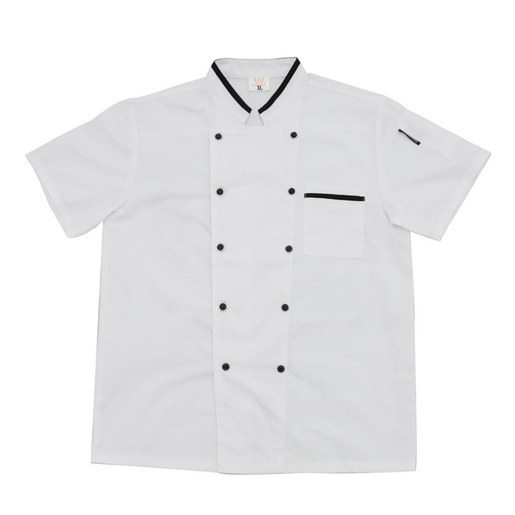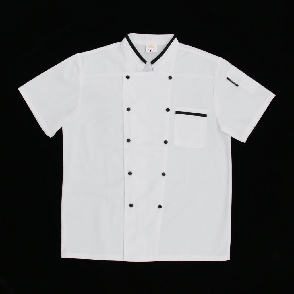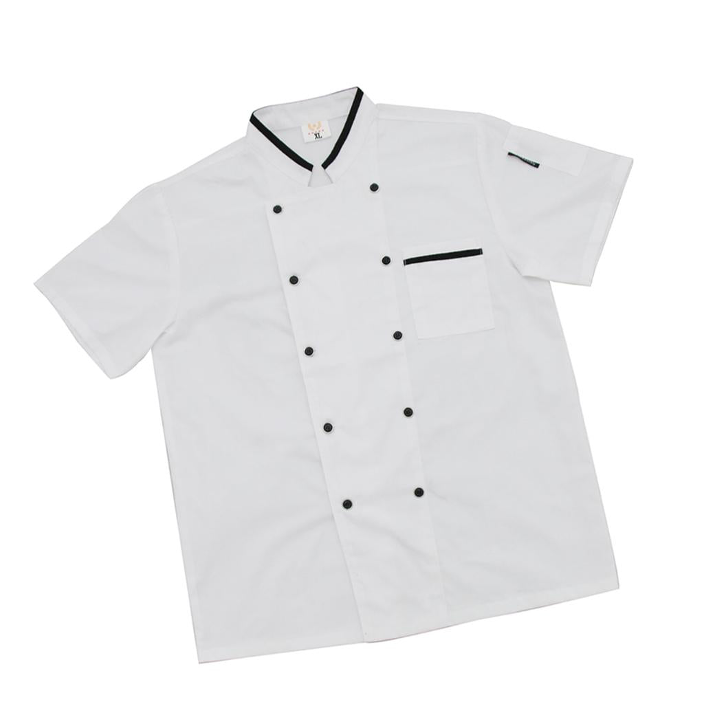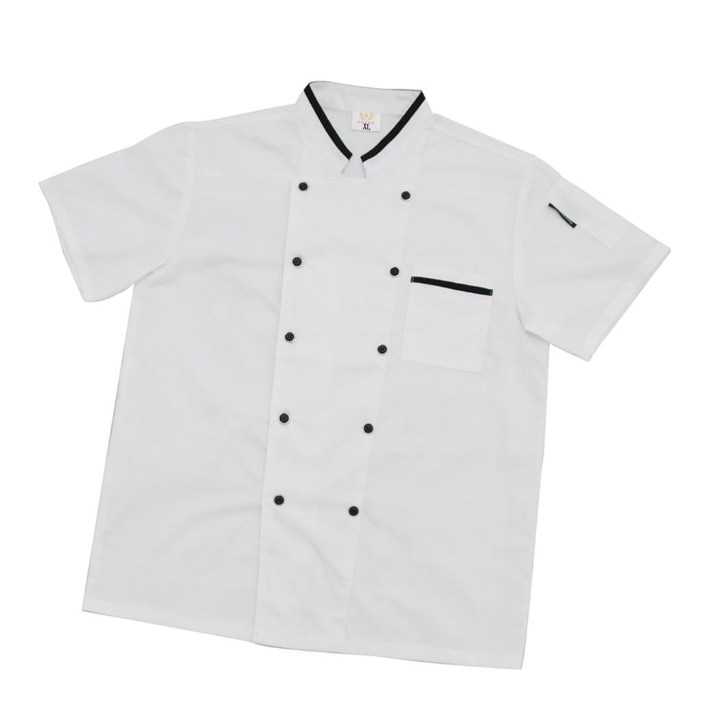 Simple and professional design, double-breasted, short sleeves, mandarin collar and having breast pocket on the left side
