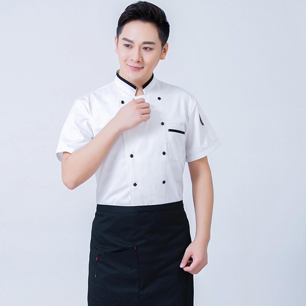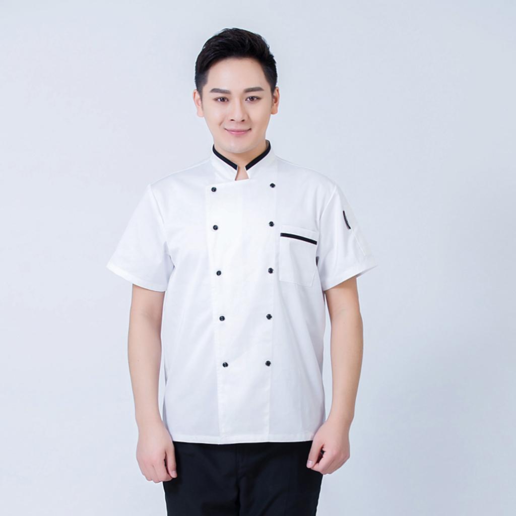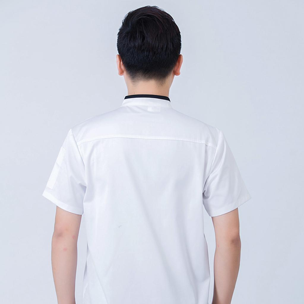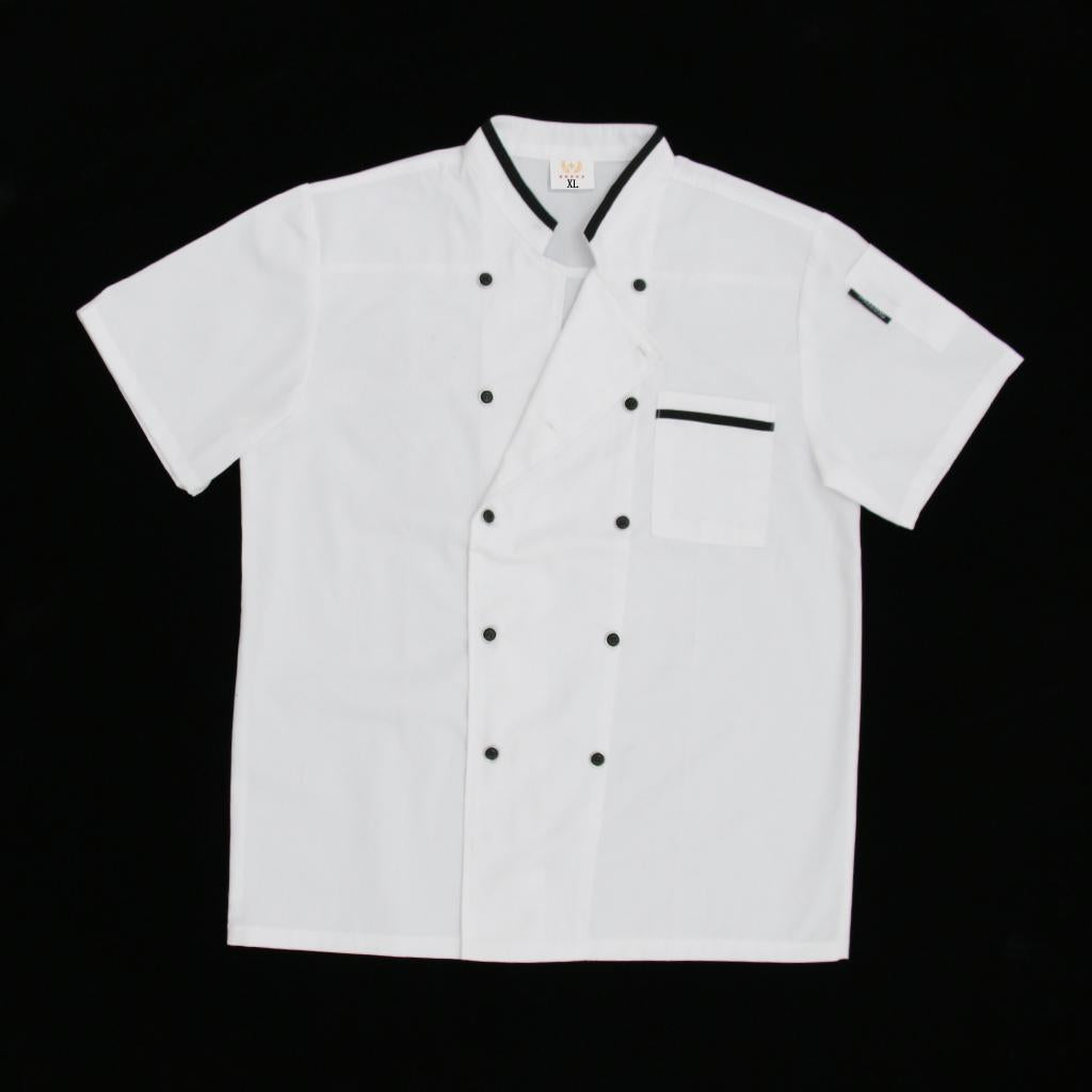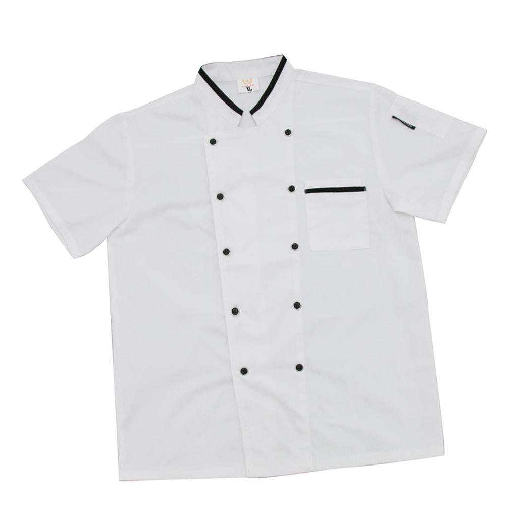 Simple and professional design, double-breasted, short sleeves, mandarin collar and having breast pocket on the left side