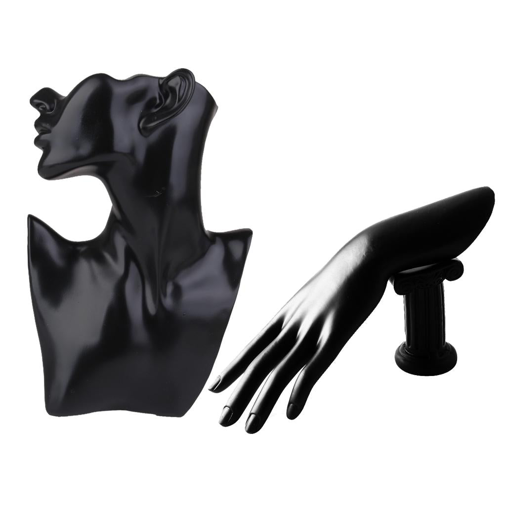 This resin mannequin hand/bust jewelry holder can display rings and bracelet,necklace and earrings.