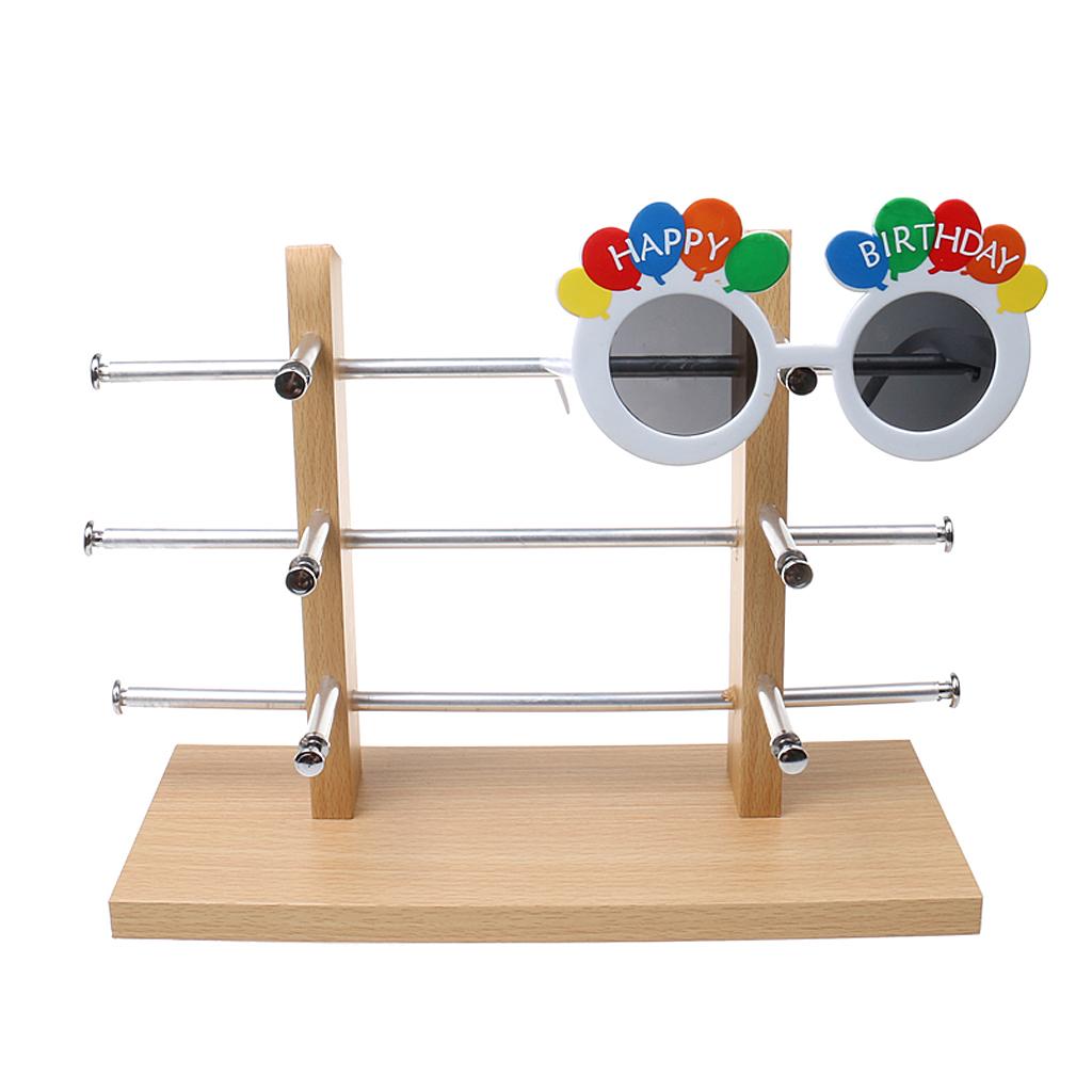 3-Layer Sunglasses Eyeglasses Display Wooden Frame Rack Stand Holder Organizer Silver