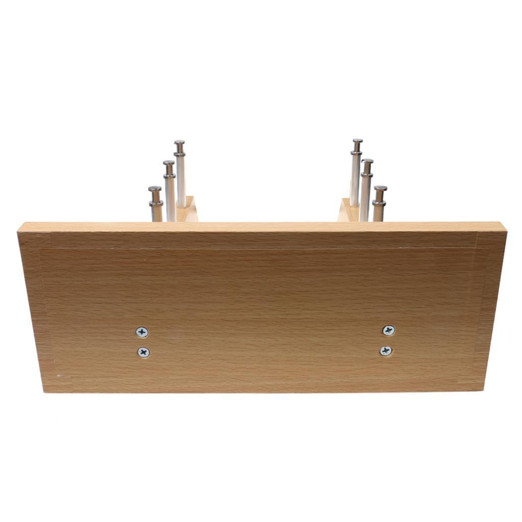 Please push the metal bar through holes on base plate and wood bars slightly, be carefully and poke the hole-film one by one, outside to in.