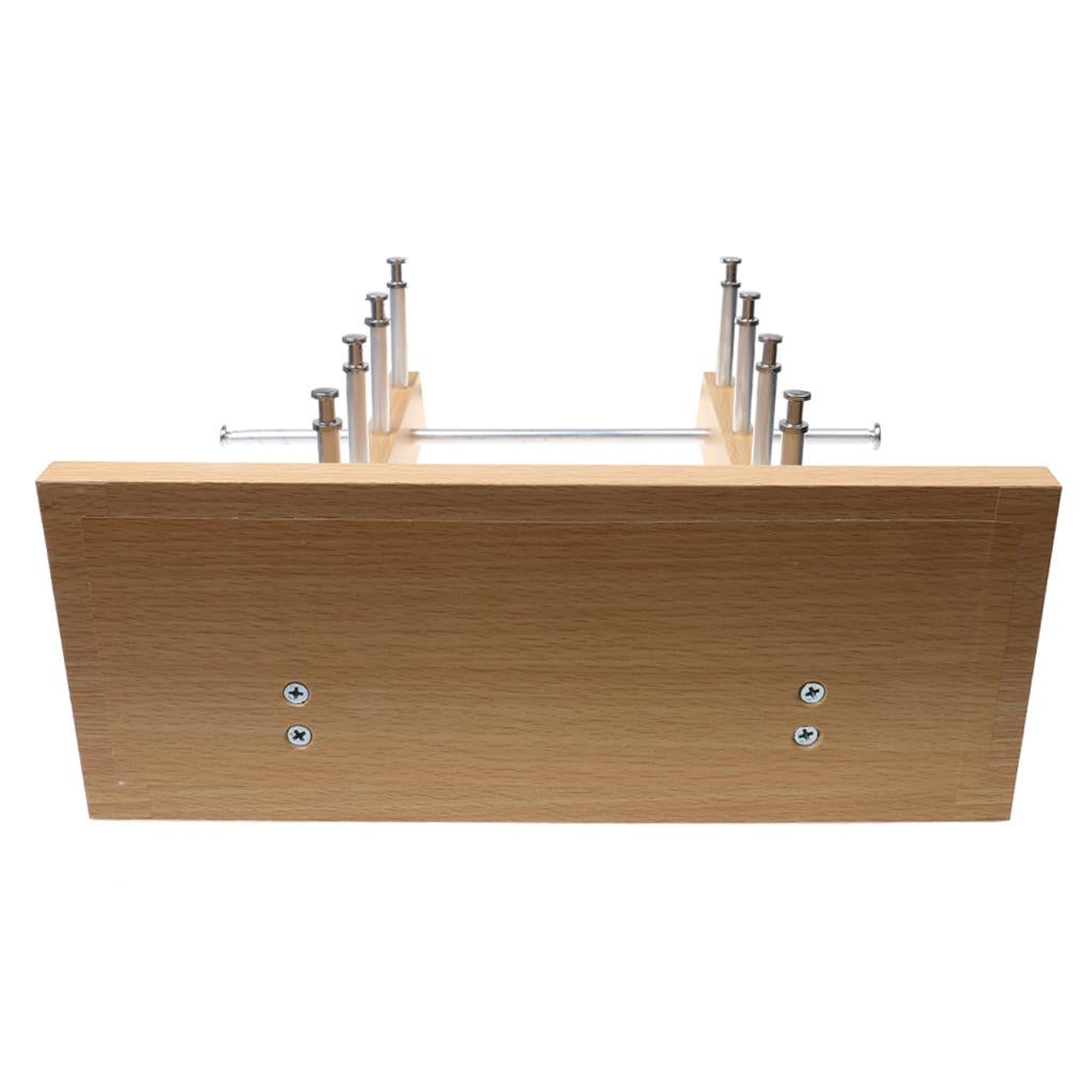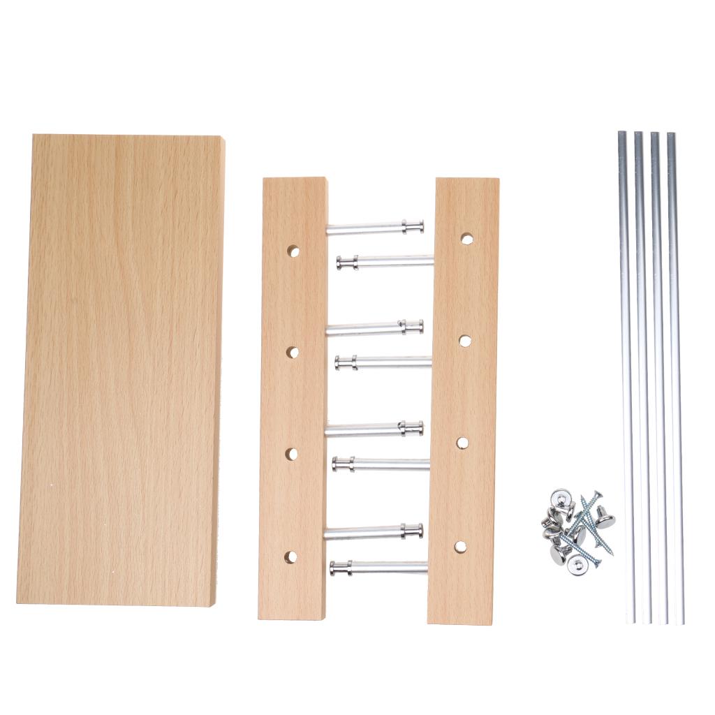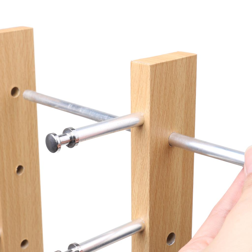 Please push the metal bar through holes on base plate and wood bars slightly, be carefully and poke the hole-film one by one, outside to in.