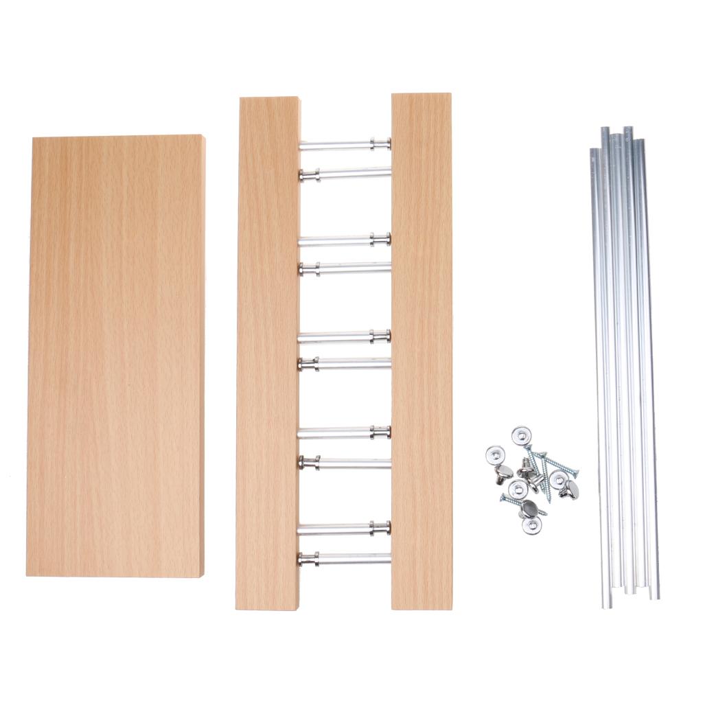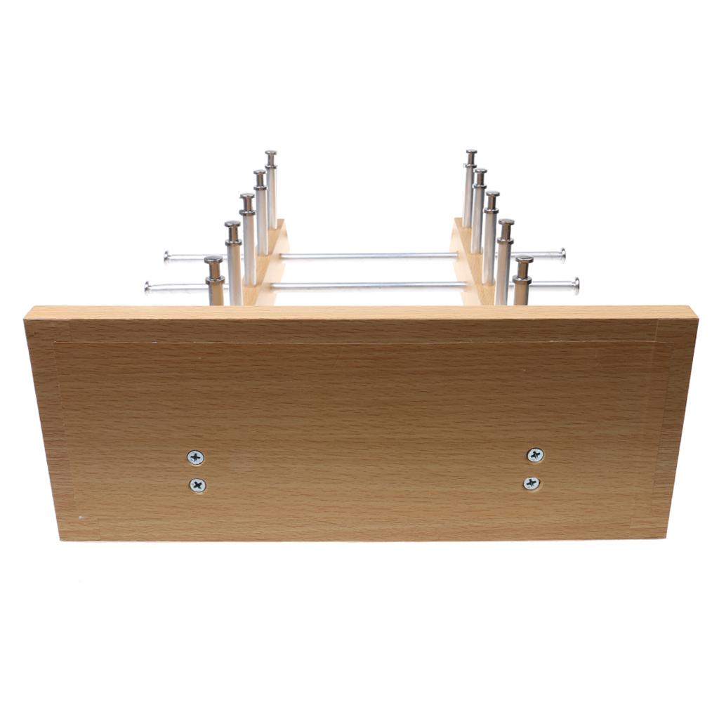 Please push the metal bar through holes on base plate and wood bars slightly, be carefully and poke the hole-film one by one, outside to in.